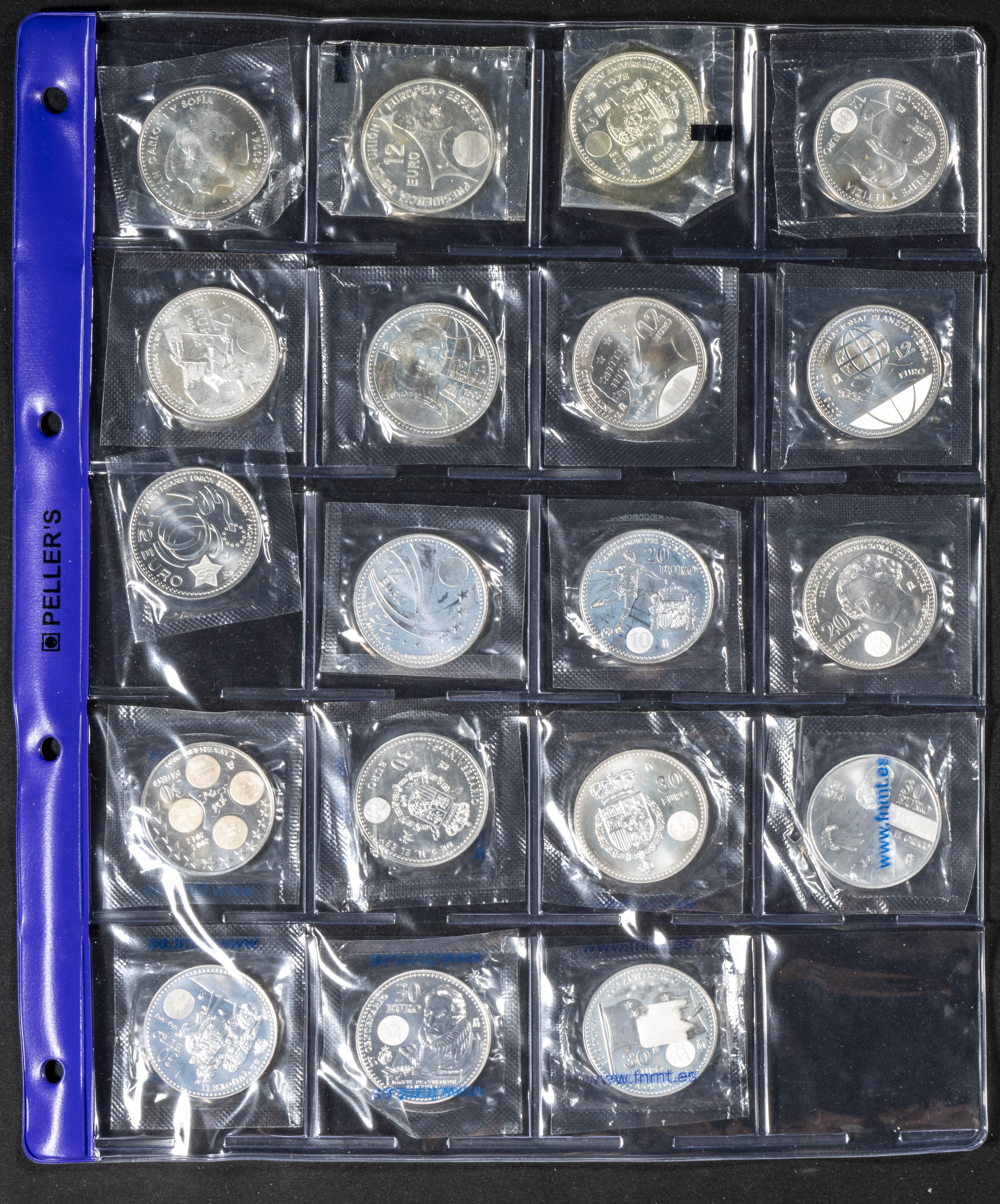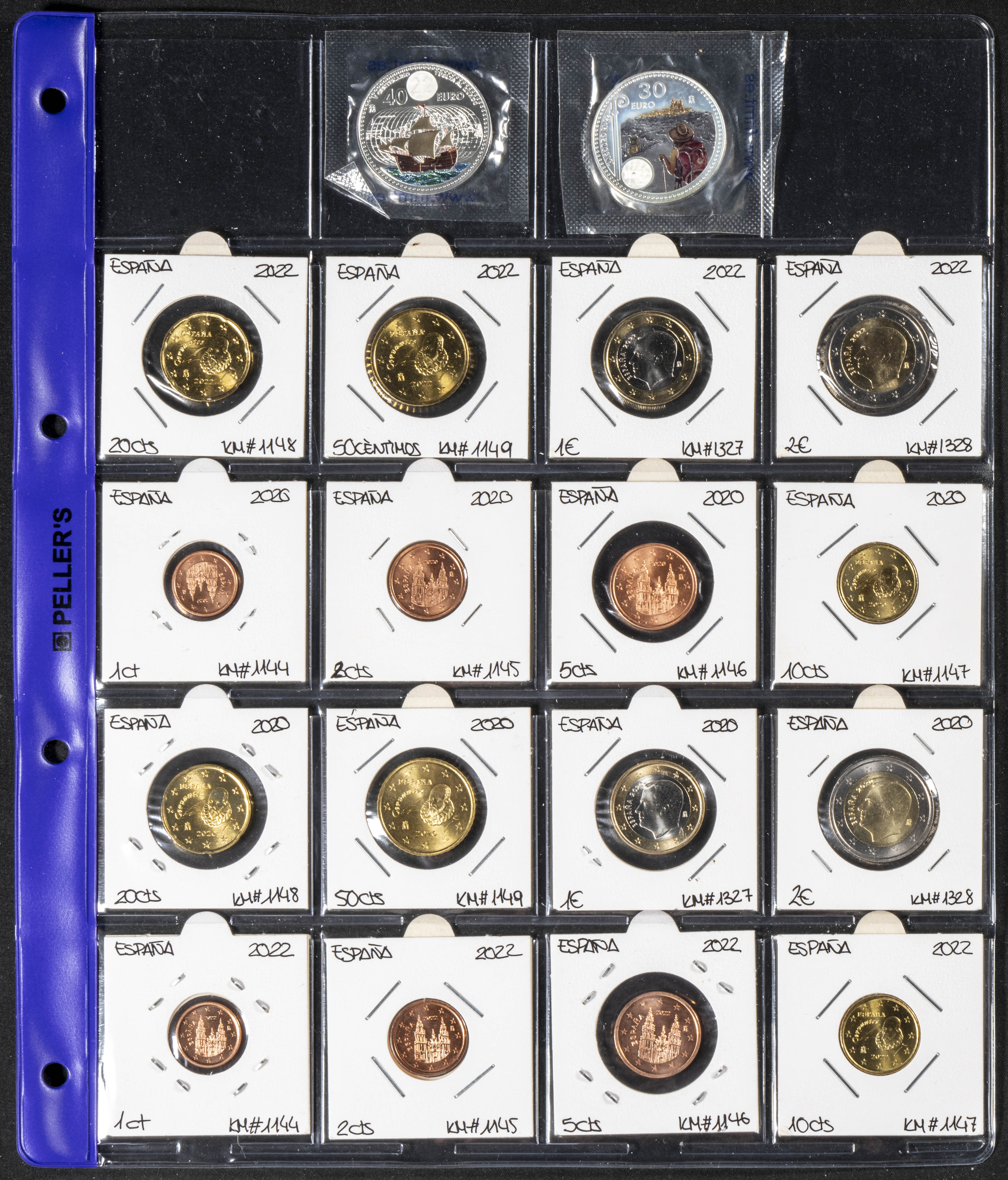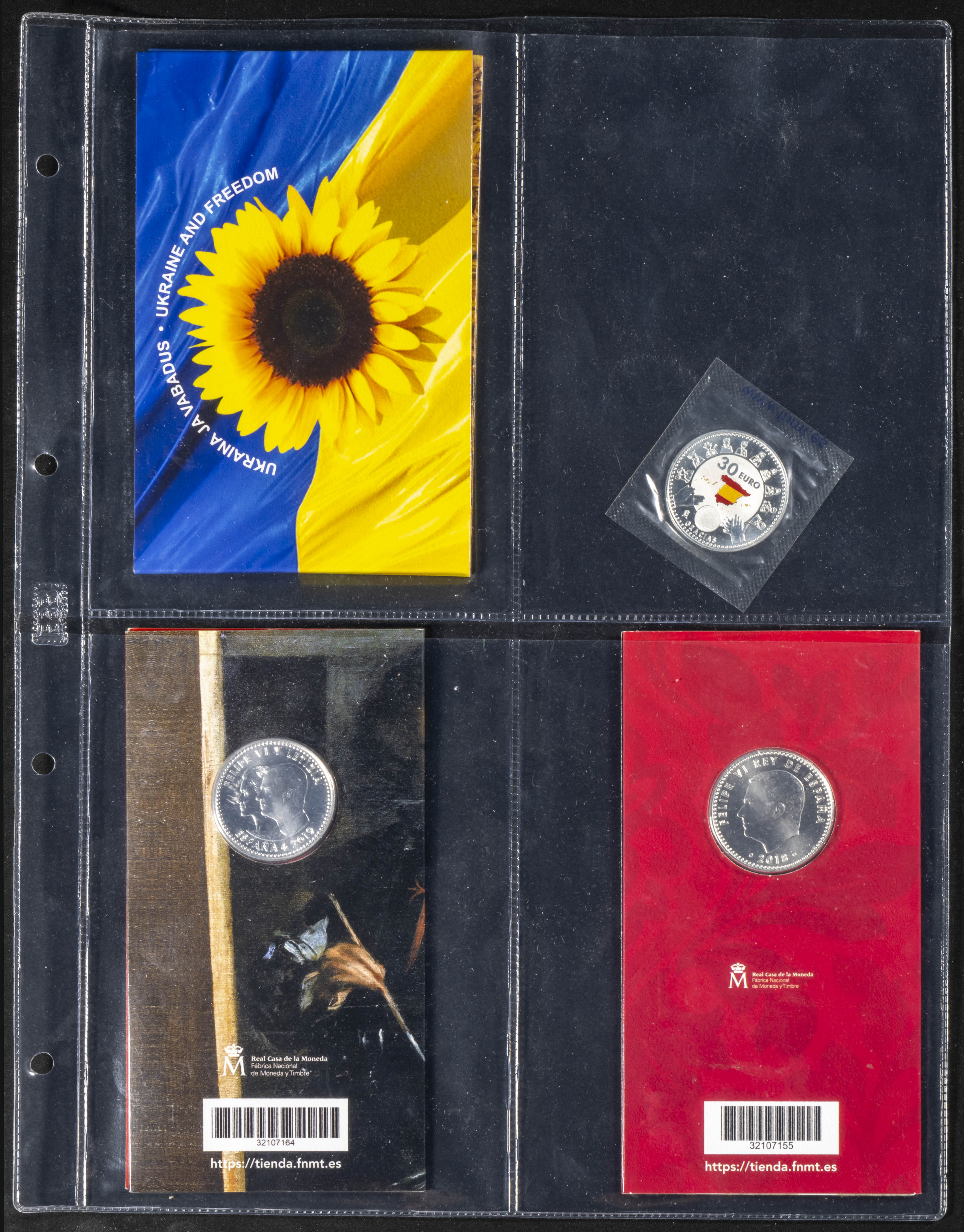 EUROS. Magnífica y extensa colección de monedas conmemorativas, principalmente, de 2€. Gran variedad de países y fechas represantadas y destacando una gran cantidad de sets y carteras oficiales entre las que destacan una importante selección de San Marino y Andorra. El conjunto se completa con una bonita selección de piezas en plata españolas con valores de 12,30 y 40€. Gran mayoría de las piezas de la colección en estado SC. Se incluyen álbumes y bandejas Leuchtturm. A EXAMINAR