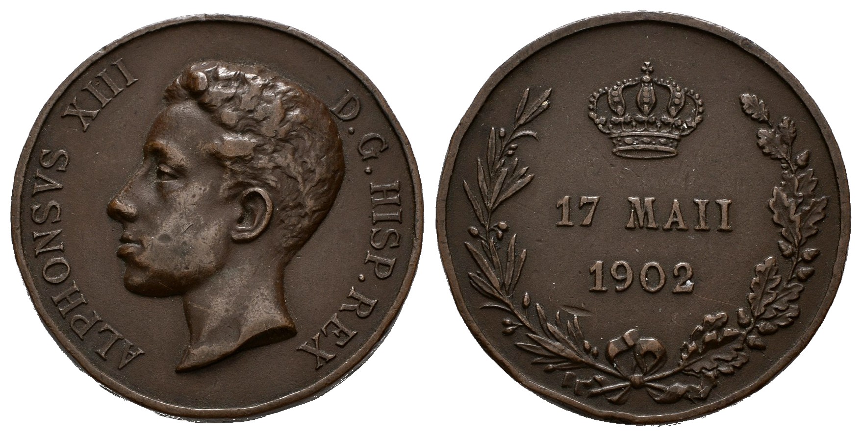ALFONSO XIII (1885-1931). Proclamación en Madrid. (Ae. 13,01g/30mm). 1902. (Vives 598). MBC+.