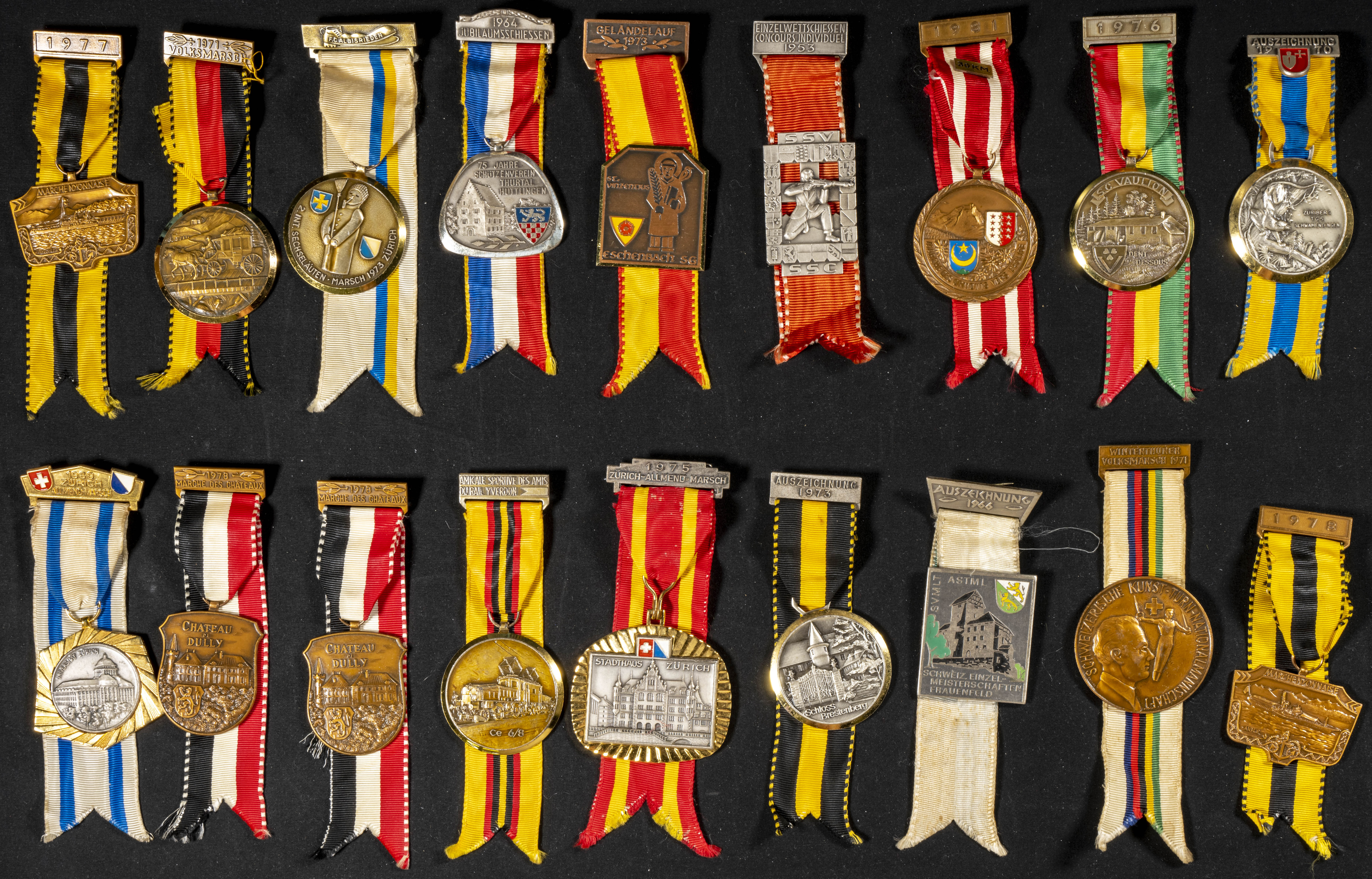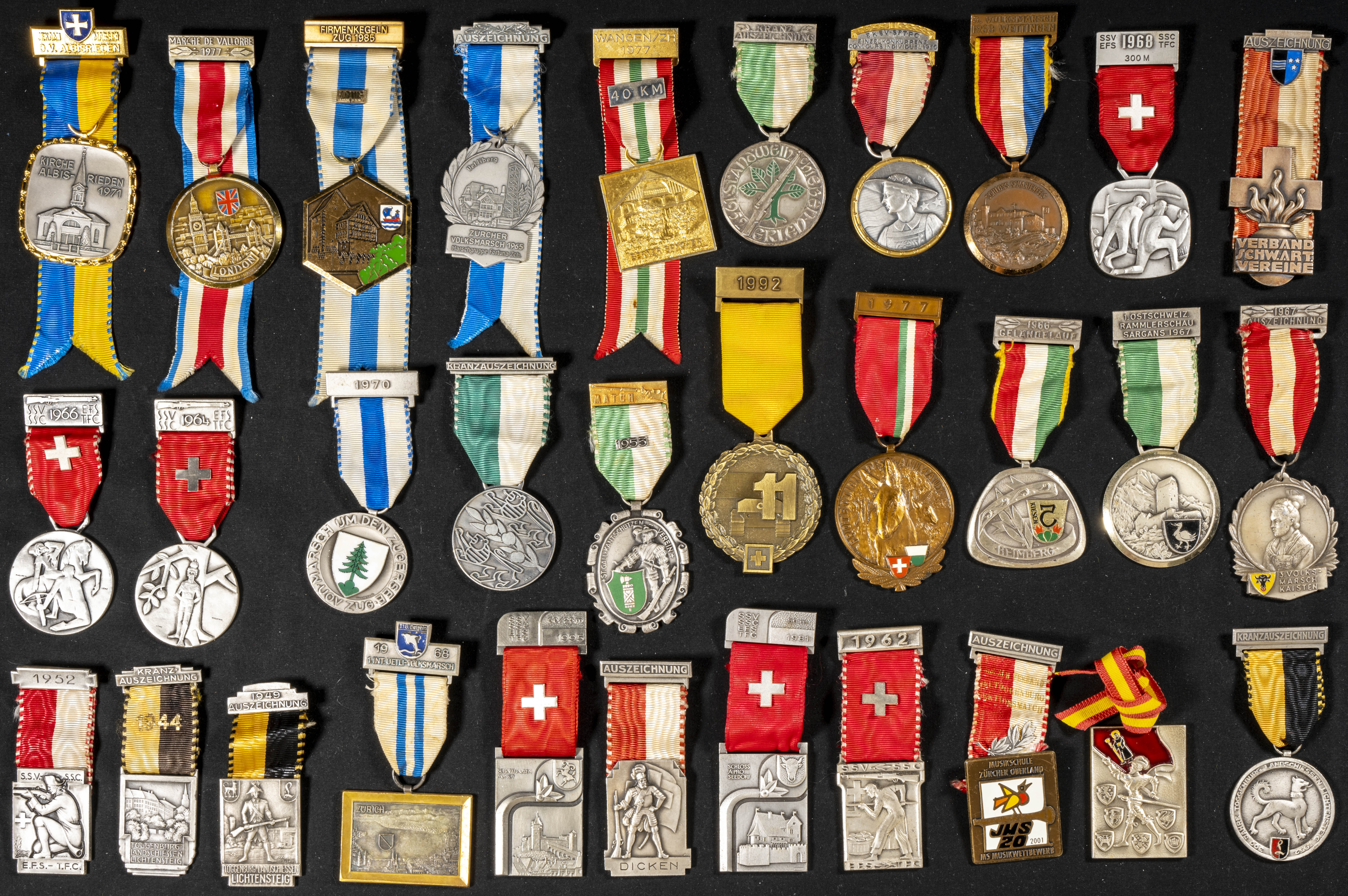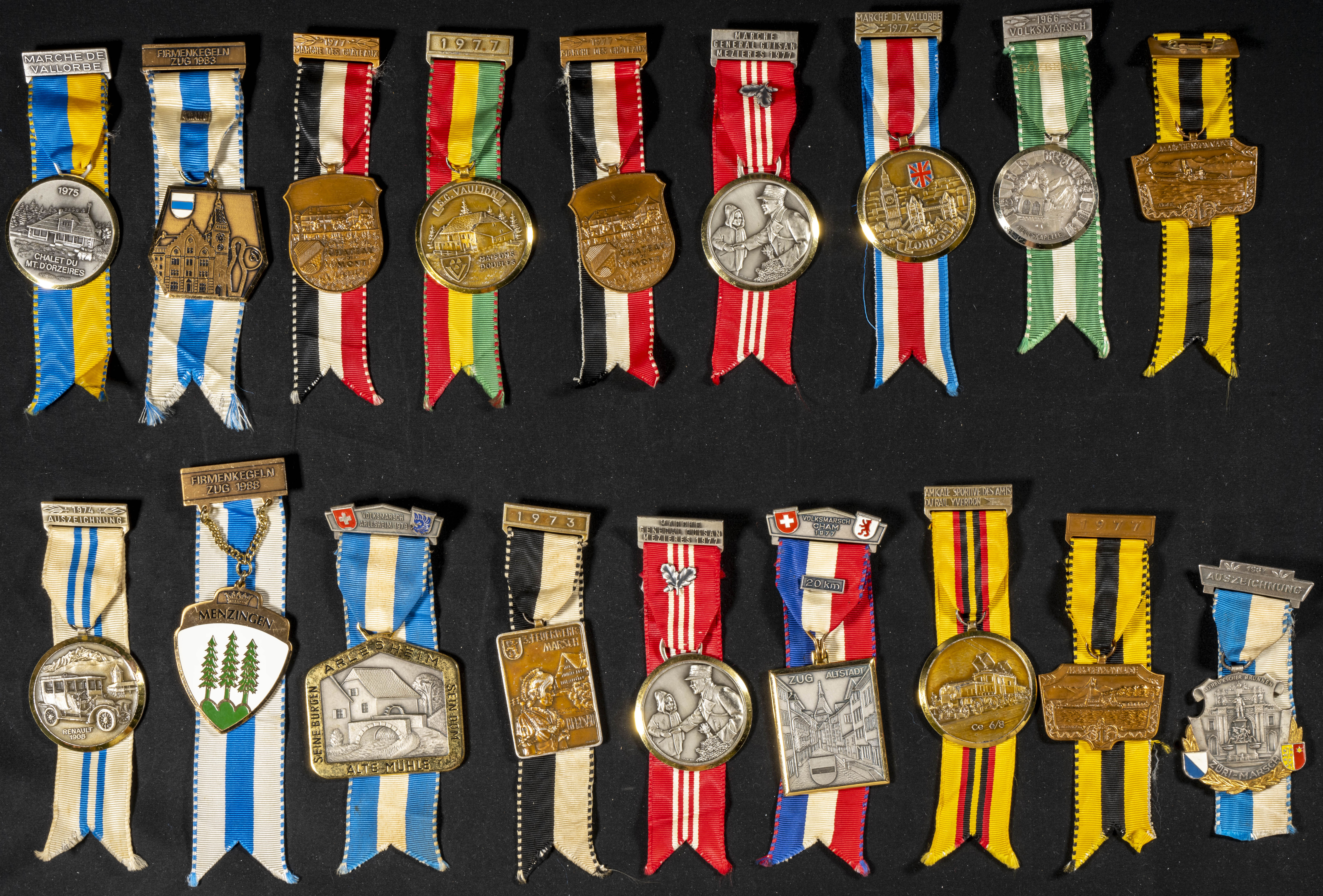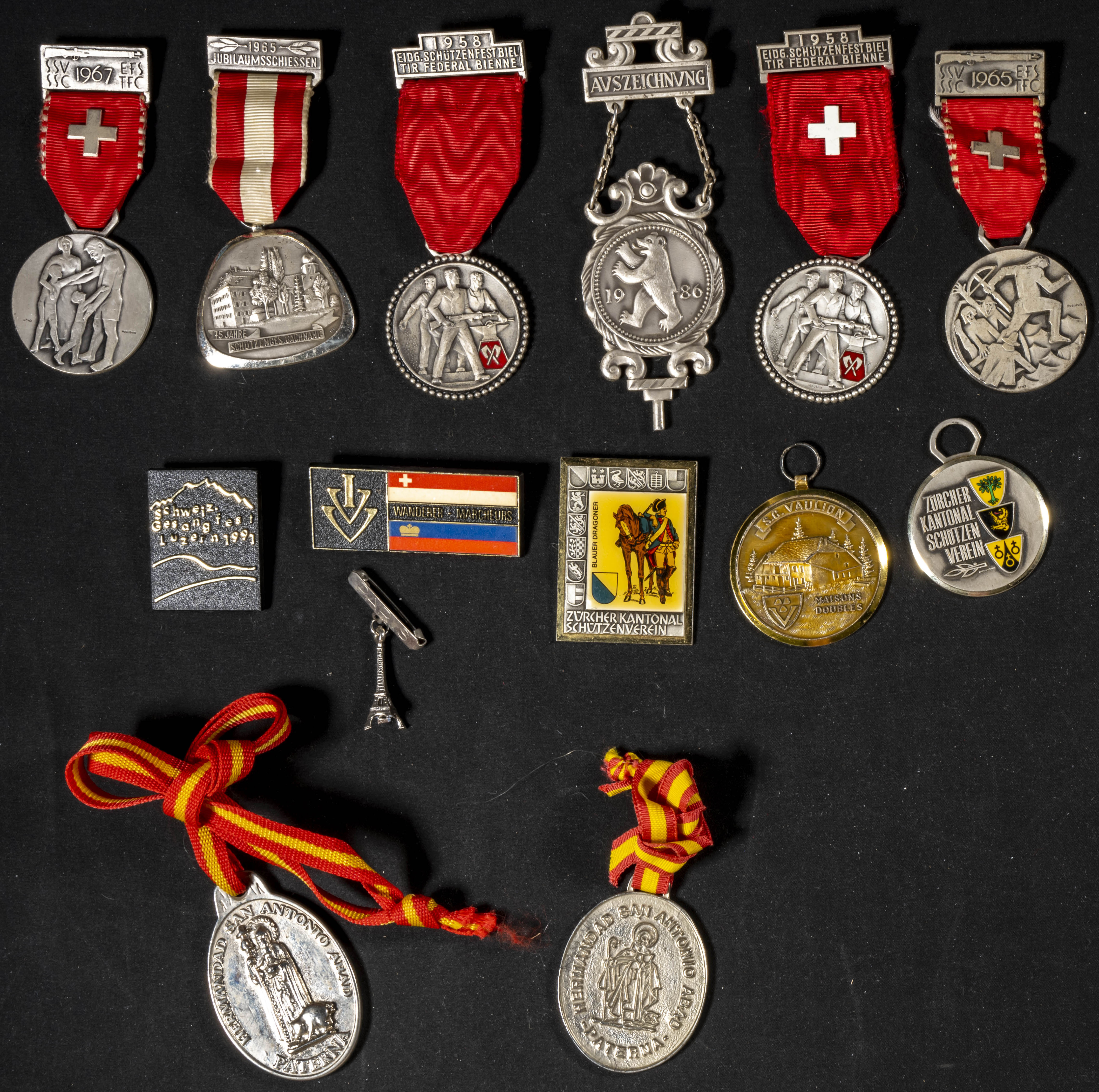 Bonita colección formada por decenas de medallas acuñadas a lo largo del siglo XX de diversos países europeos, especialmente suizas, alemanas y españolas representando diferentes temáticas. Muchas de ellas conservan su cinta y pasador original. Diferentes estados de conservación. A EXAMINAR.