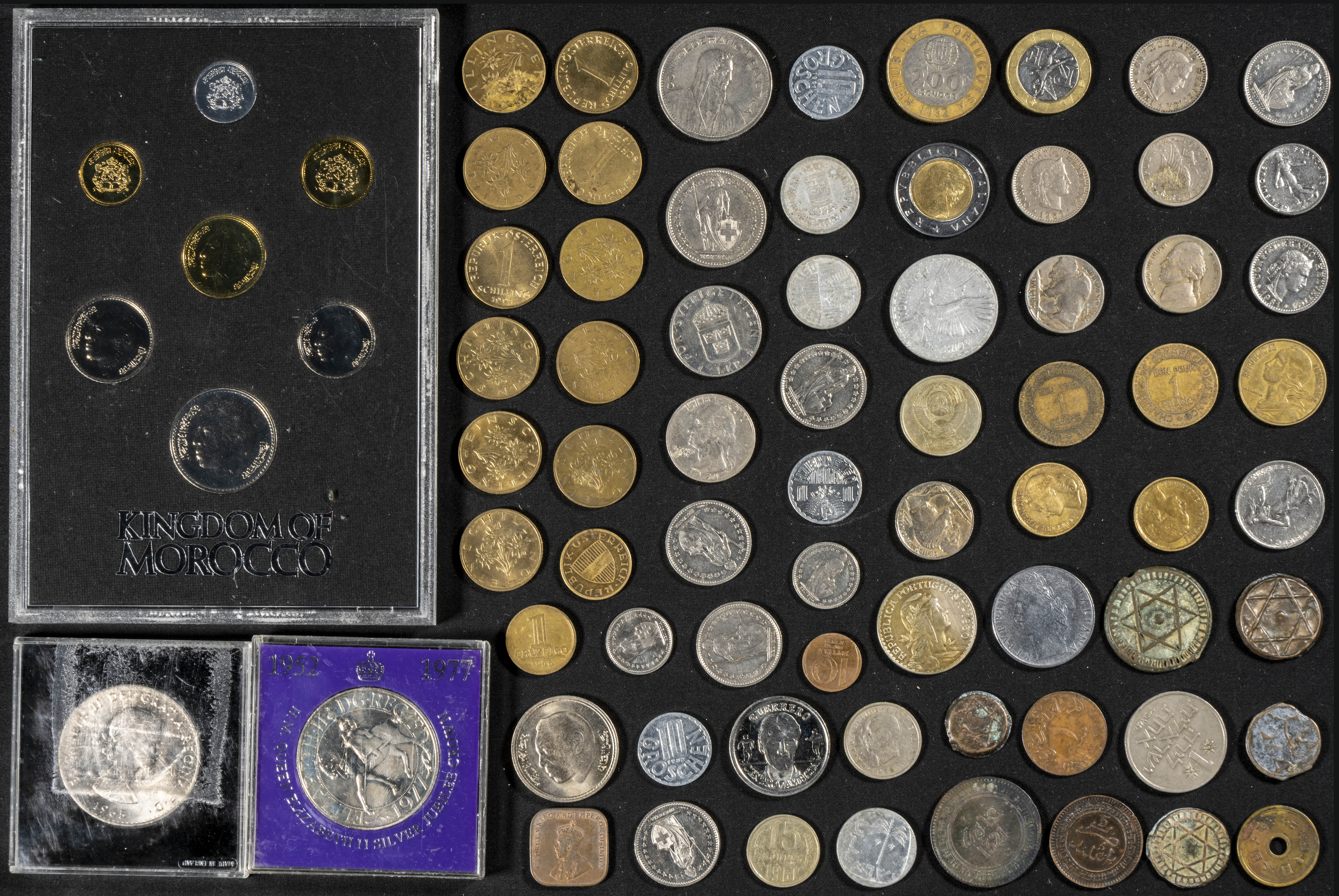 MONEDAS EXTRANJERAS. Conjunto de aproximadamente 70 monedas de diferentes módulos, países y fechas. Incluye piezas conmemorativas y un set completo de Marruecos de 1975. Diferentes estados de conservación. A EXAMINAR.