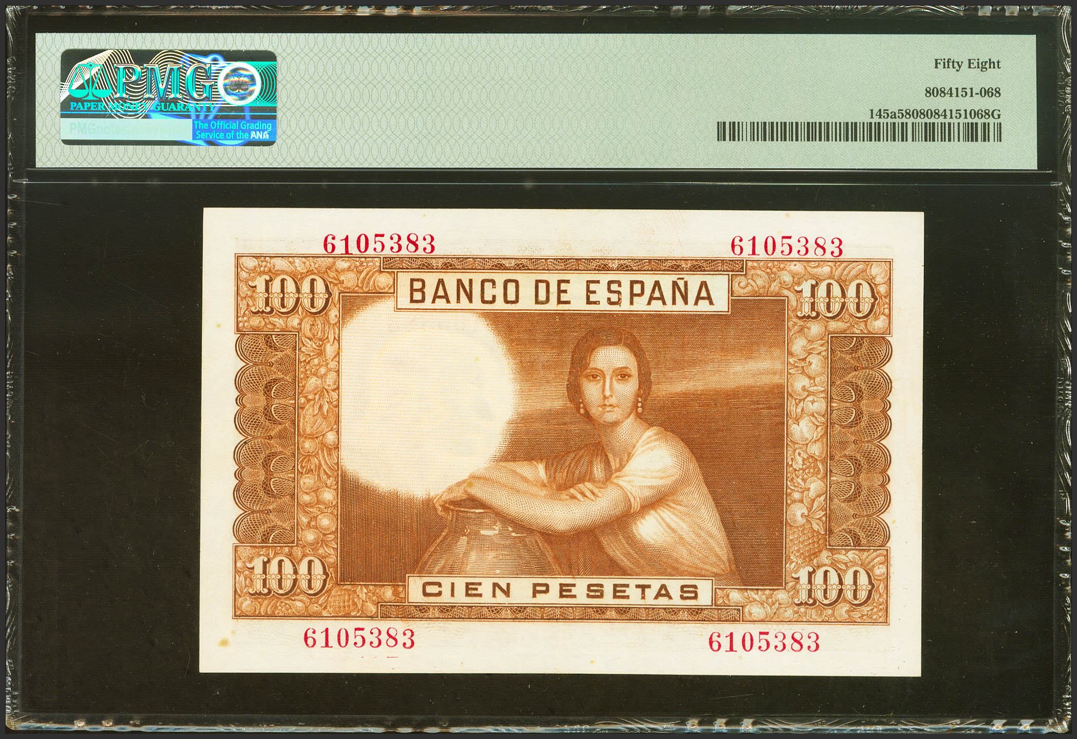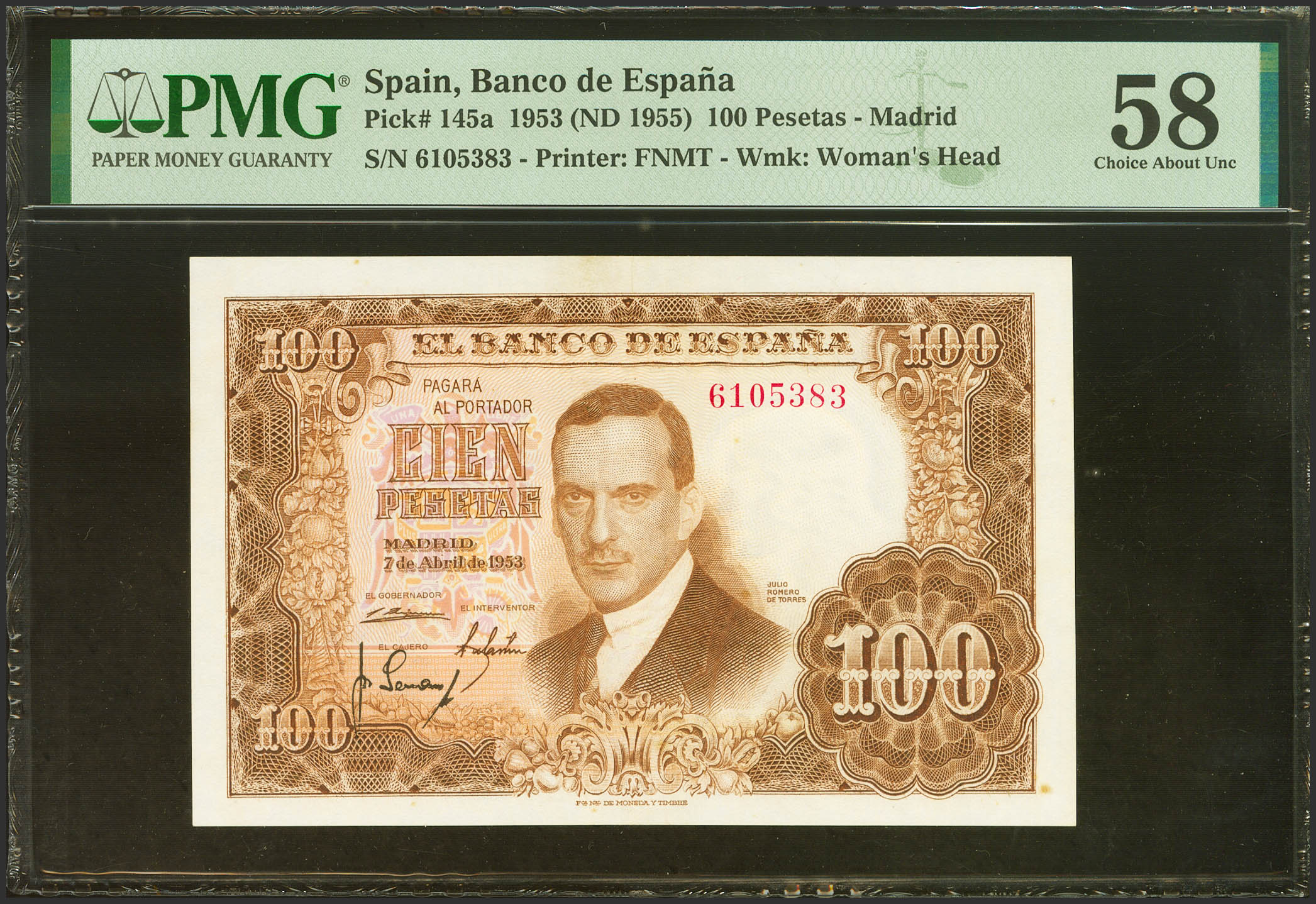 100 Pesetas. 7 de Abril de 1953. Sin serie. (Edifil 2023: 464, Pick: 145a). EBC++. Encapsulado PMG58.