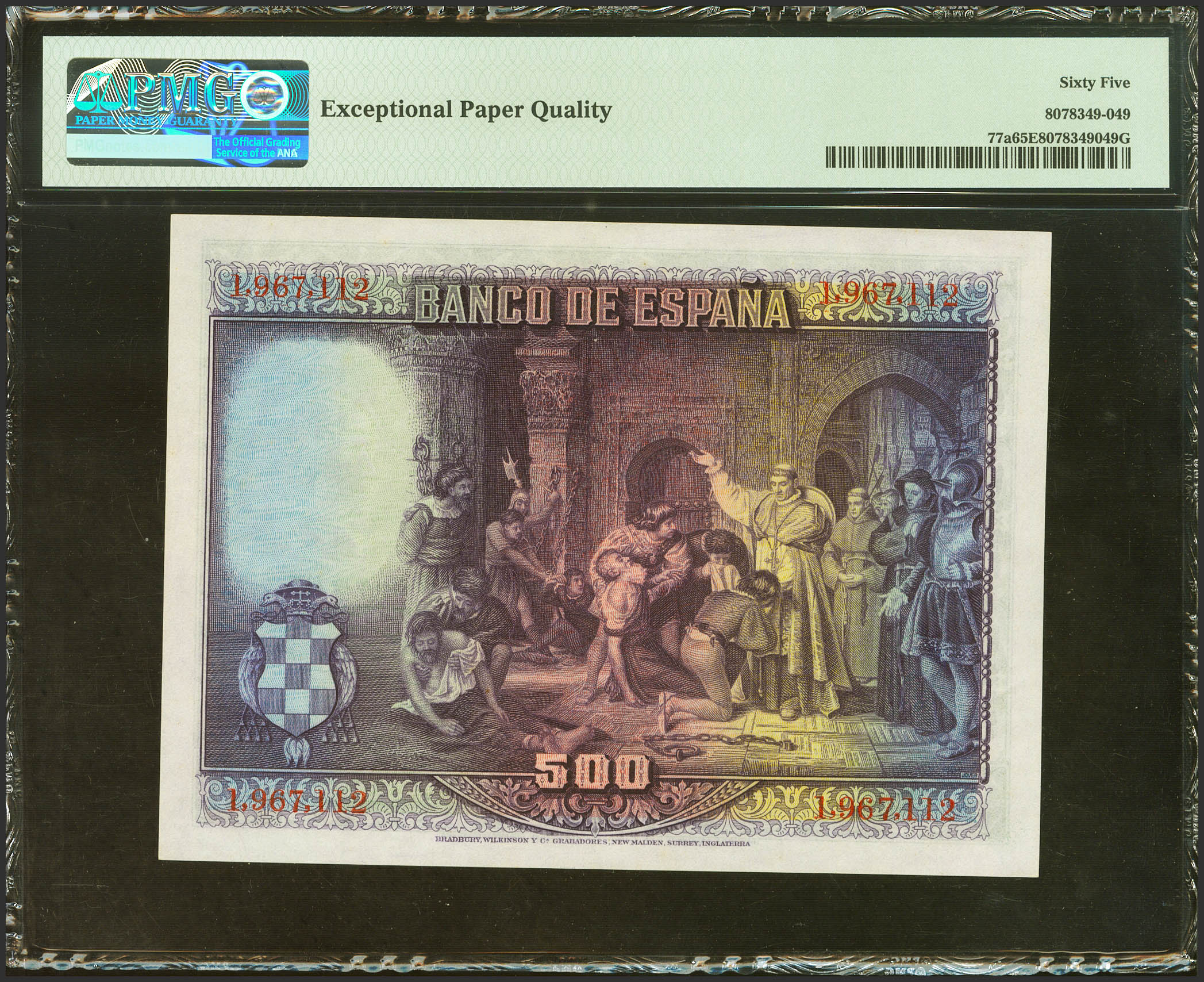 500 Pesetas. 15 de Agosto de 1928. Sin serie. (Edifil 2023: 356, Pick: 77a). Apresto original. SC. Encapsulado PMG65EPQ.