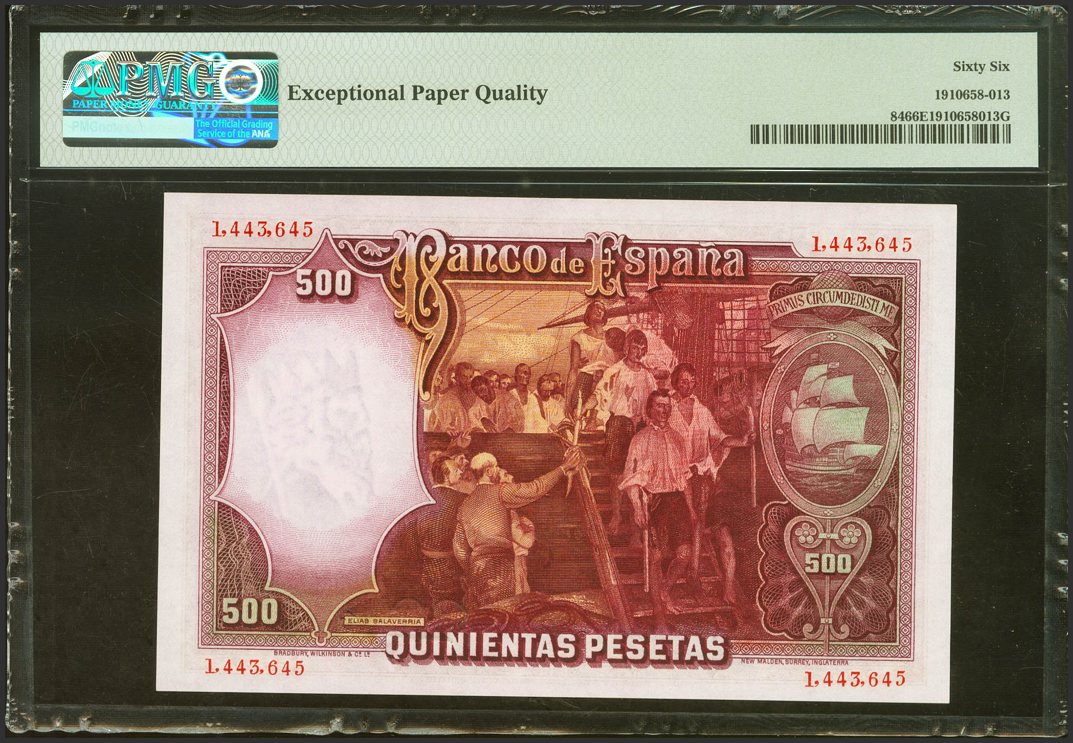 500 Pesetas. 25 de Abril de 1931. Sin serie. (Edifil 2023: 361, Pick: 84). Inusual en esta calidad, apresto original. SC. Encapsulado PMG66EPQ.