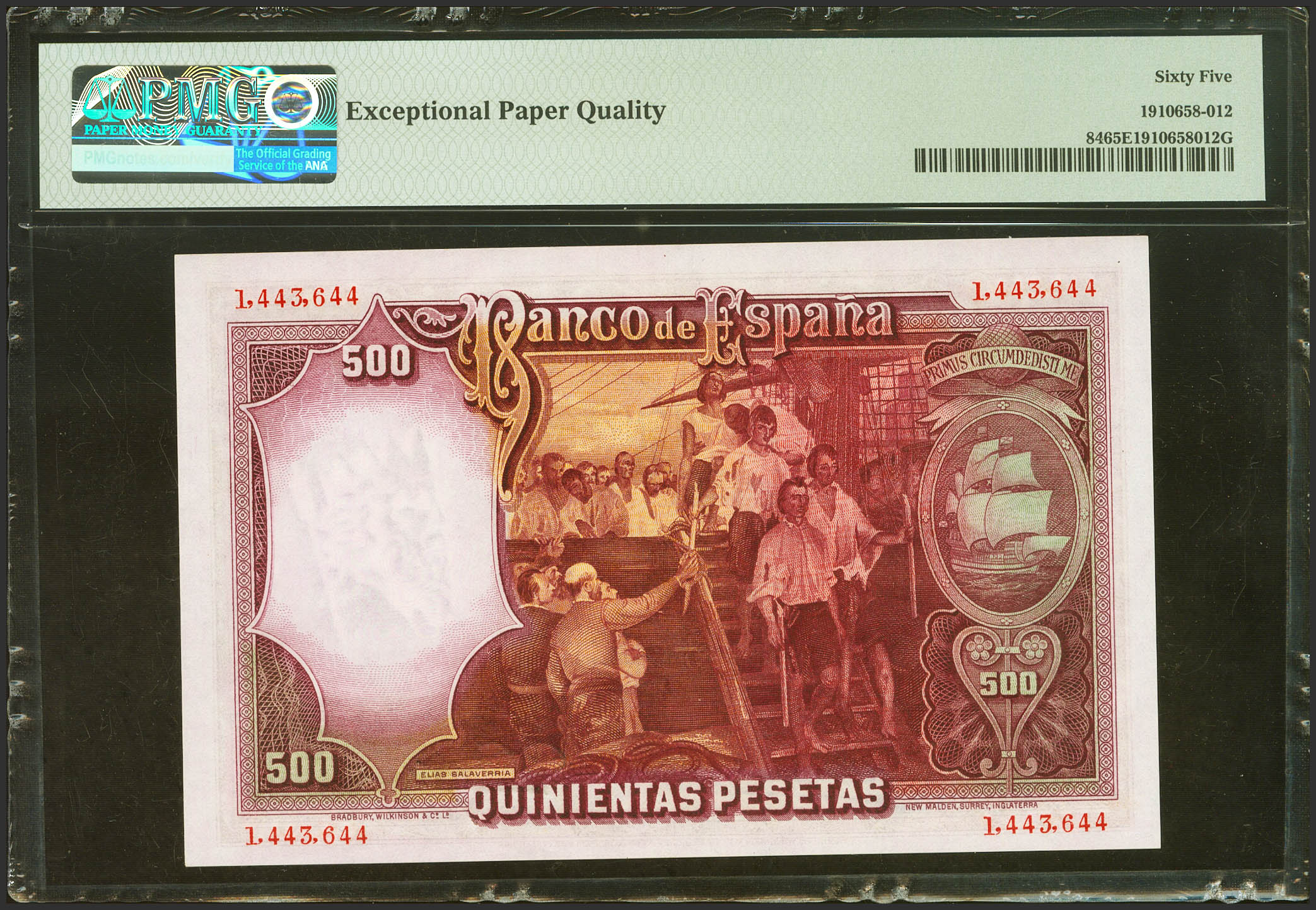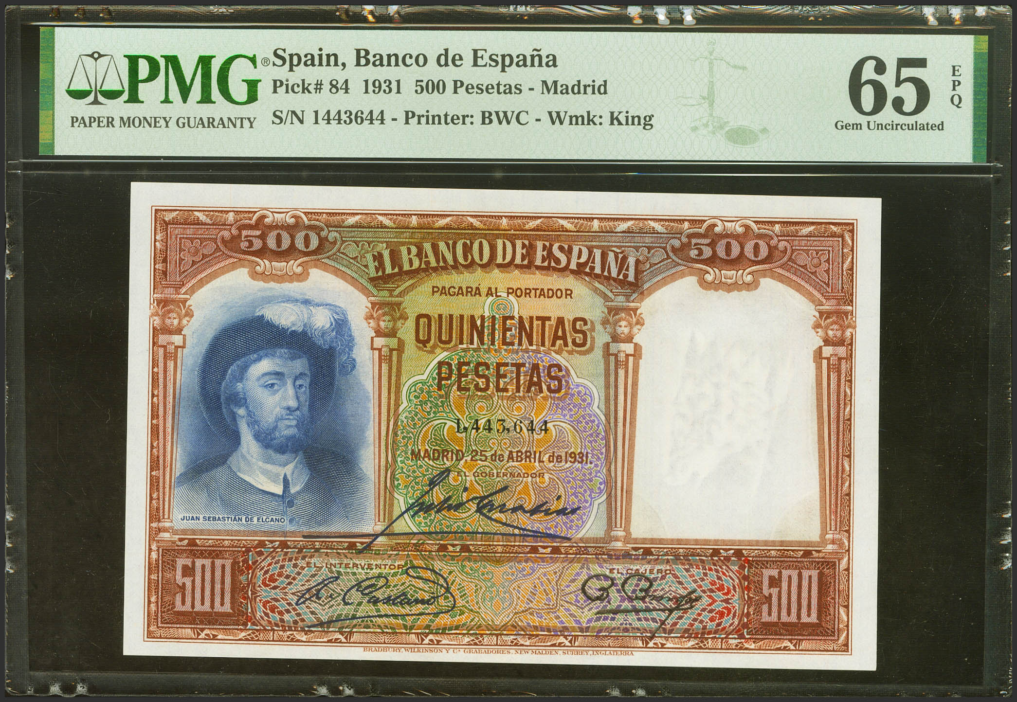 500 Pesetas. 25 de Abril de 1931. Sin serie. (Edifil 2023: 361, Pick: 84). Inusual en esta calidad, apresto original. SC. Encapsulado PMG65EPQ.