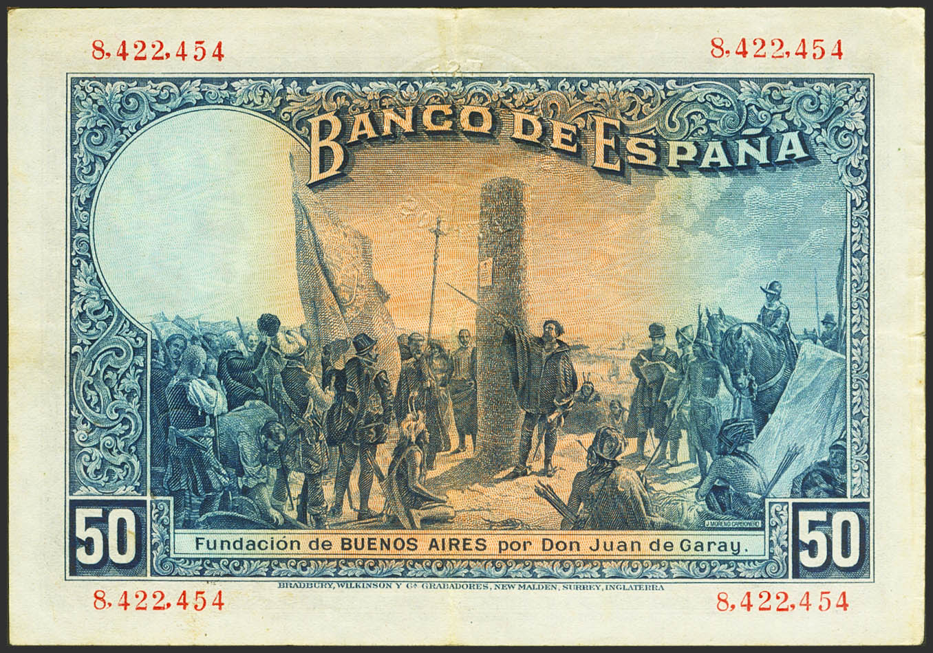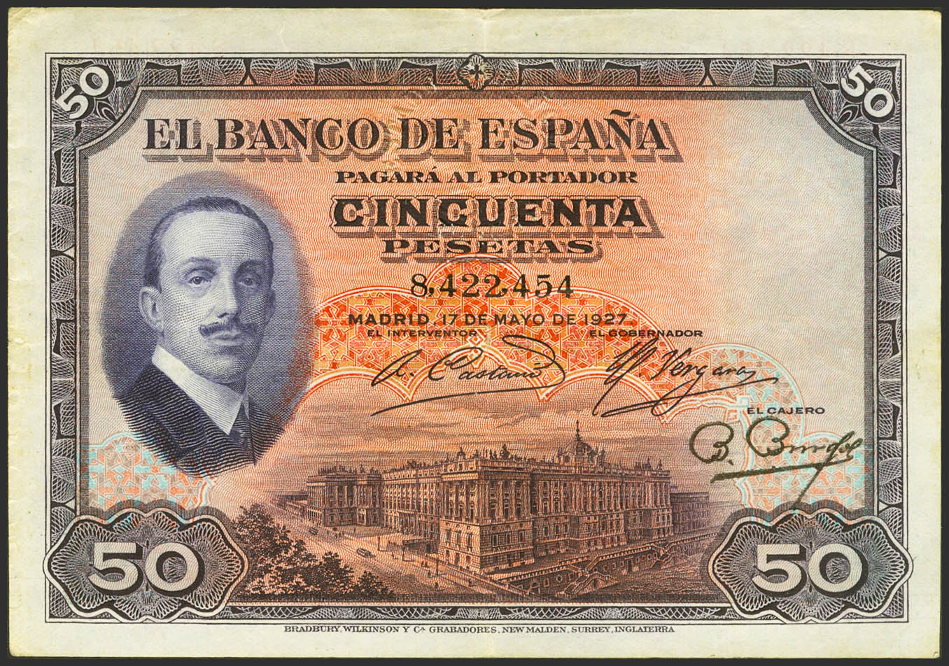 50 Pesetas. 12 de Octubre de 1926. Sin serie y sello en seco ESTADO ESPAÑOL / BURGOS. (Edifil 2023: 406, Pick: 72b). MBC+.