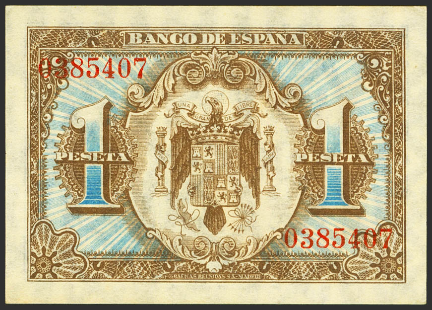 1 Peseta. 1 de Junio de 1940. Sin serie. (Edifil 2023: 441, Pick: 121a). Inusual, conserva todo su apresto original. SC-.
