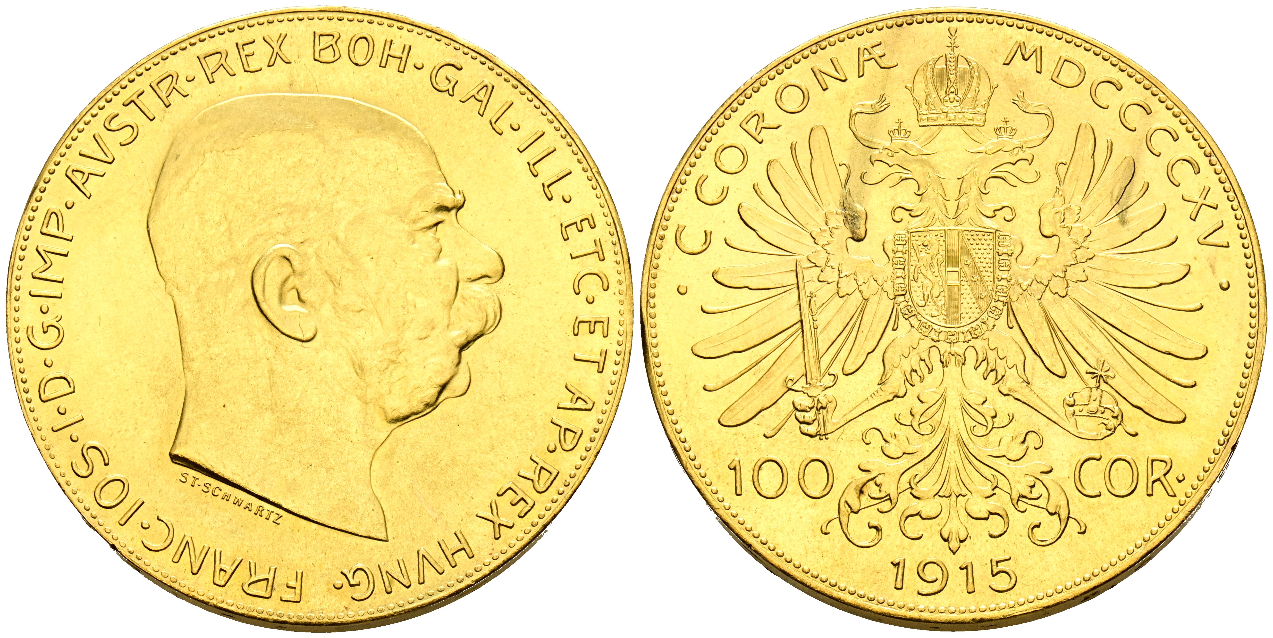 AUSTRIA, Francisco José I. 100 Coronas. (Au. 33,87g/37mm). 1915. (Km#2819). Reacuñación oficial. EBC-.