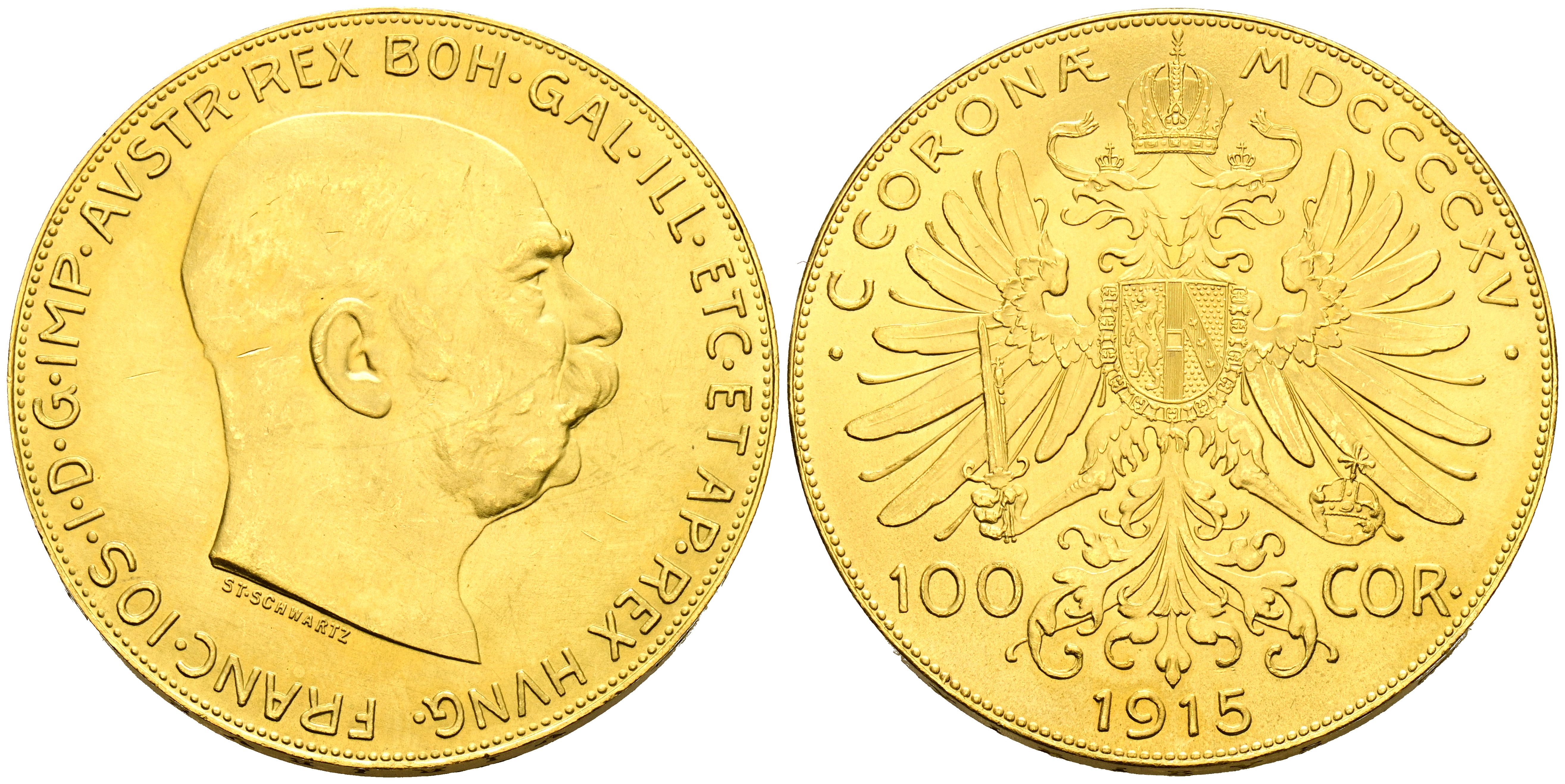 AUSTRIA, Francisco José I. 100 Coronas. (Au. 33,89g/37mm). 1915. (Km#2819). Reacuñación oficial. EBC-.