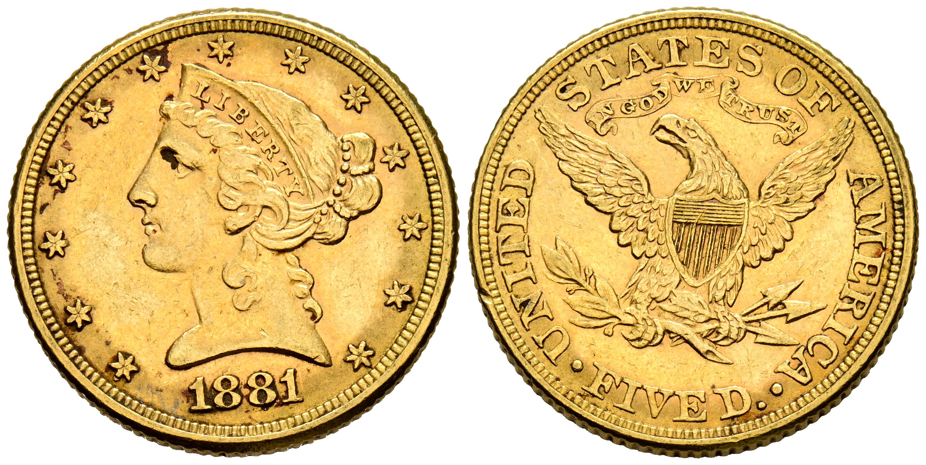 ESTADOS UNIDOS. 5 Dólares. (Au. 8,34g/21mm). 1881. Philadelphia. (Km#101). MBC+.