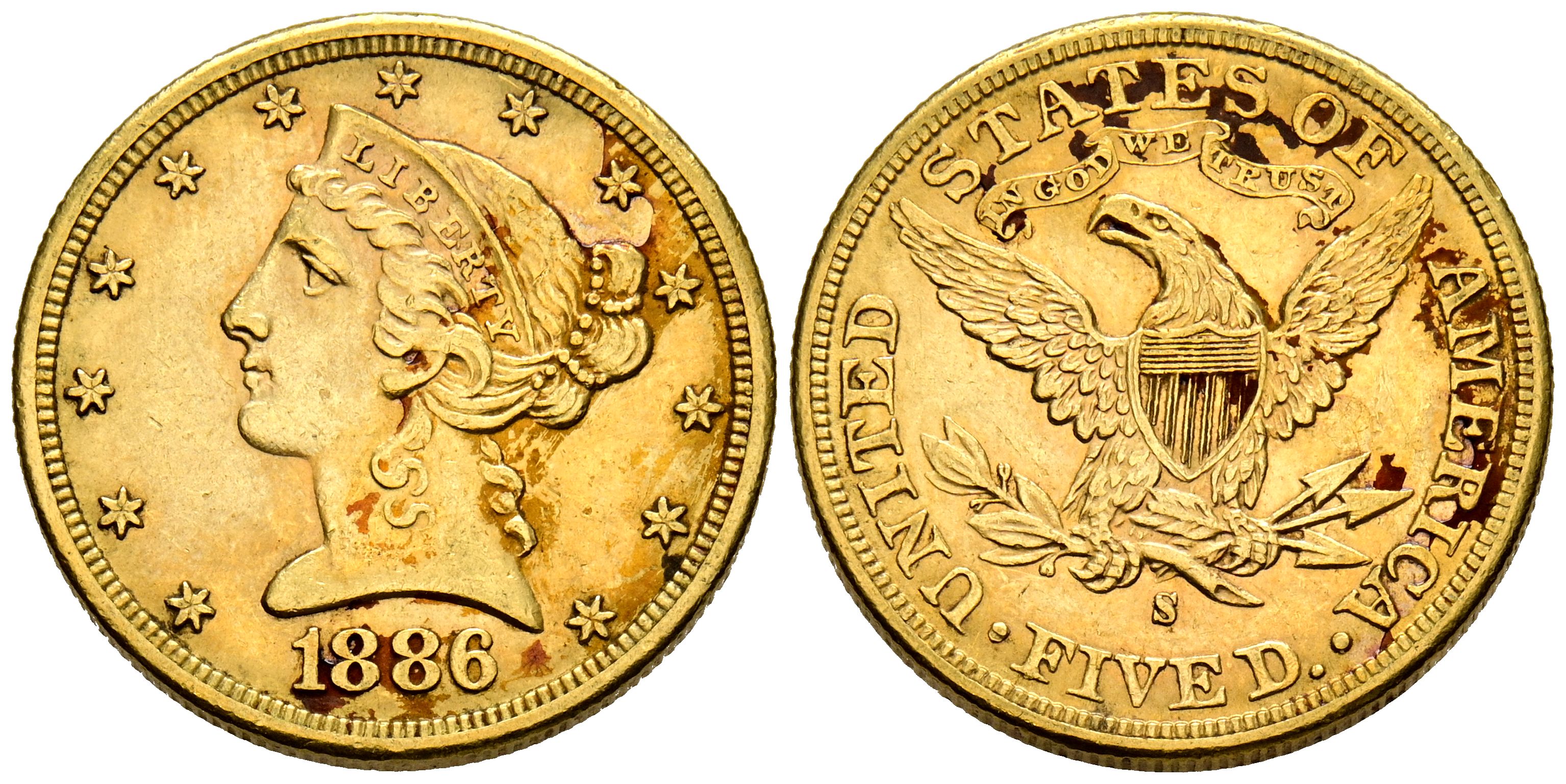 ESTADOS UNIDOS. 5 Dólares. (Au. 8,35g/21mm). 1886. San Francisco S. (Km#101). MBC+.