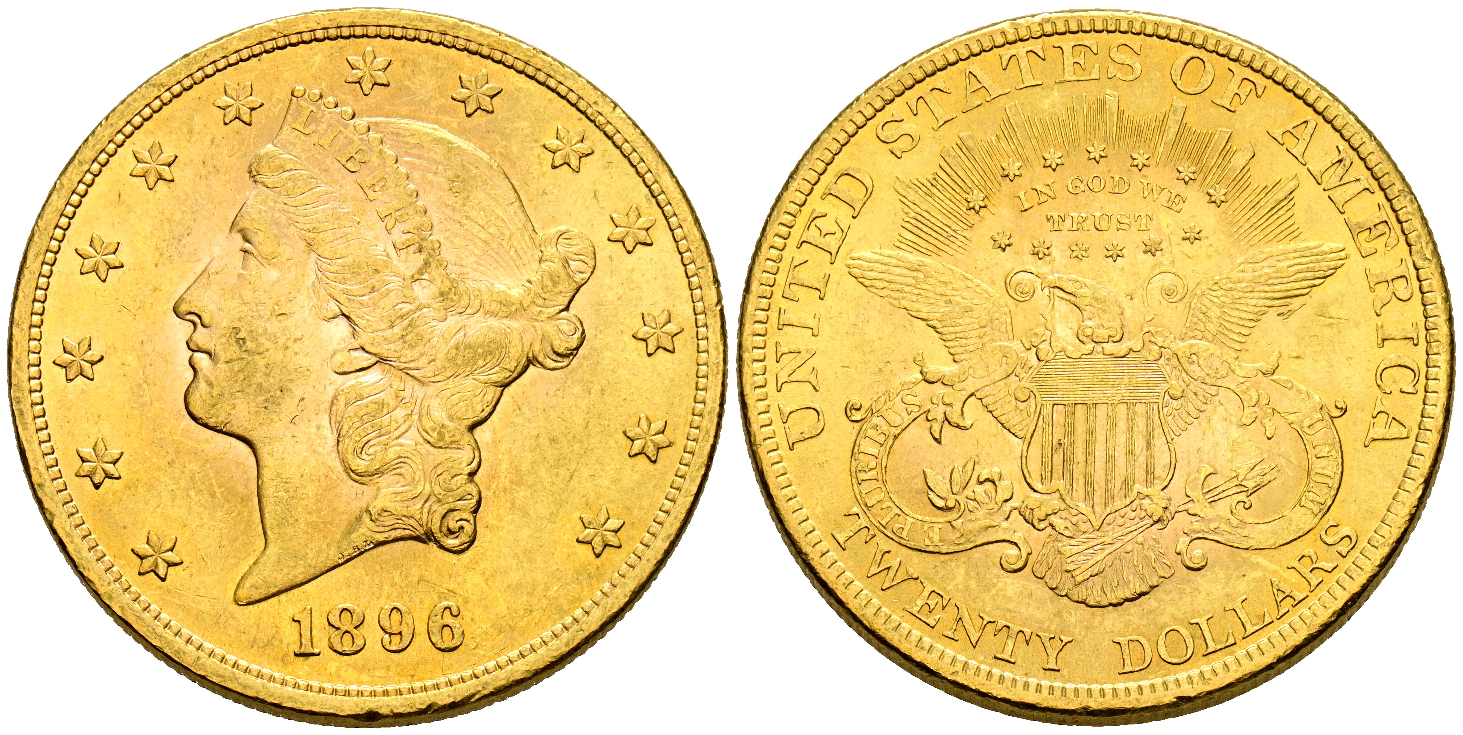 ESTADOS UNIDOS. 20 Dólares. (Au. 33,44g/34mm). 1896. Philadelphia. (Km#74.3). MBC+.