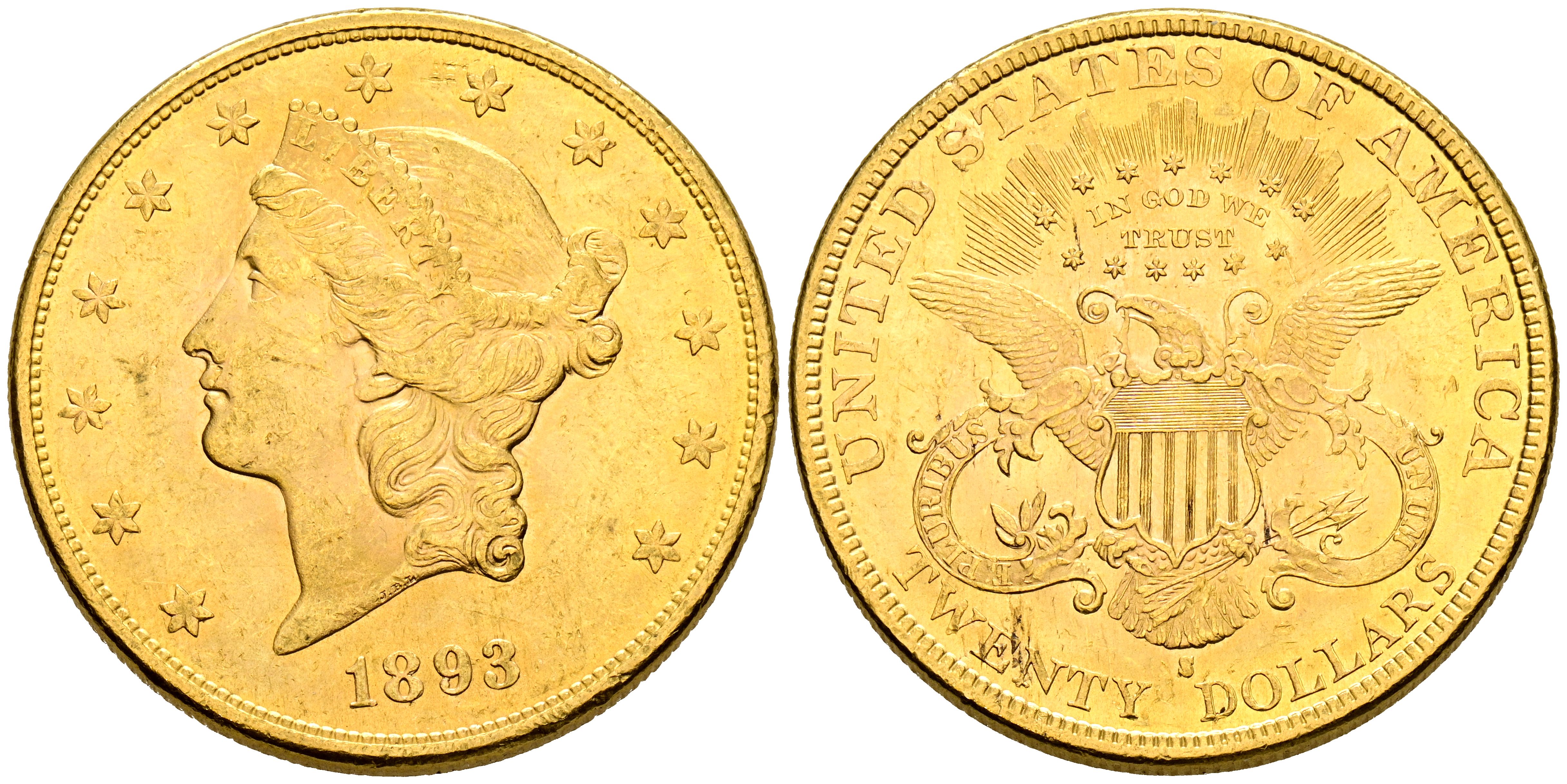 ESTADOS UNIDOS. 20 Dólares. (Au. 33,42g/34mm). 1893. San Francisco S. (Km#74.3). MBC+.
