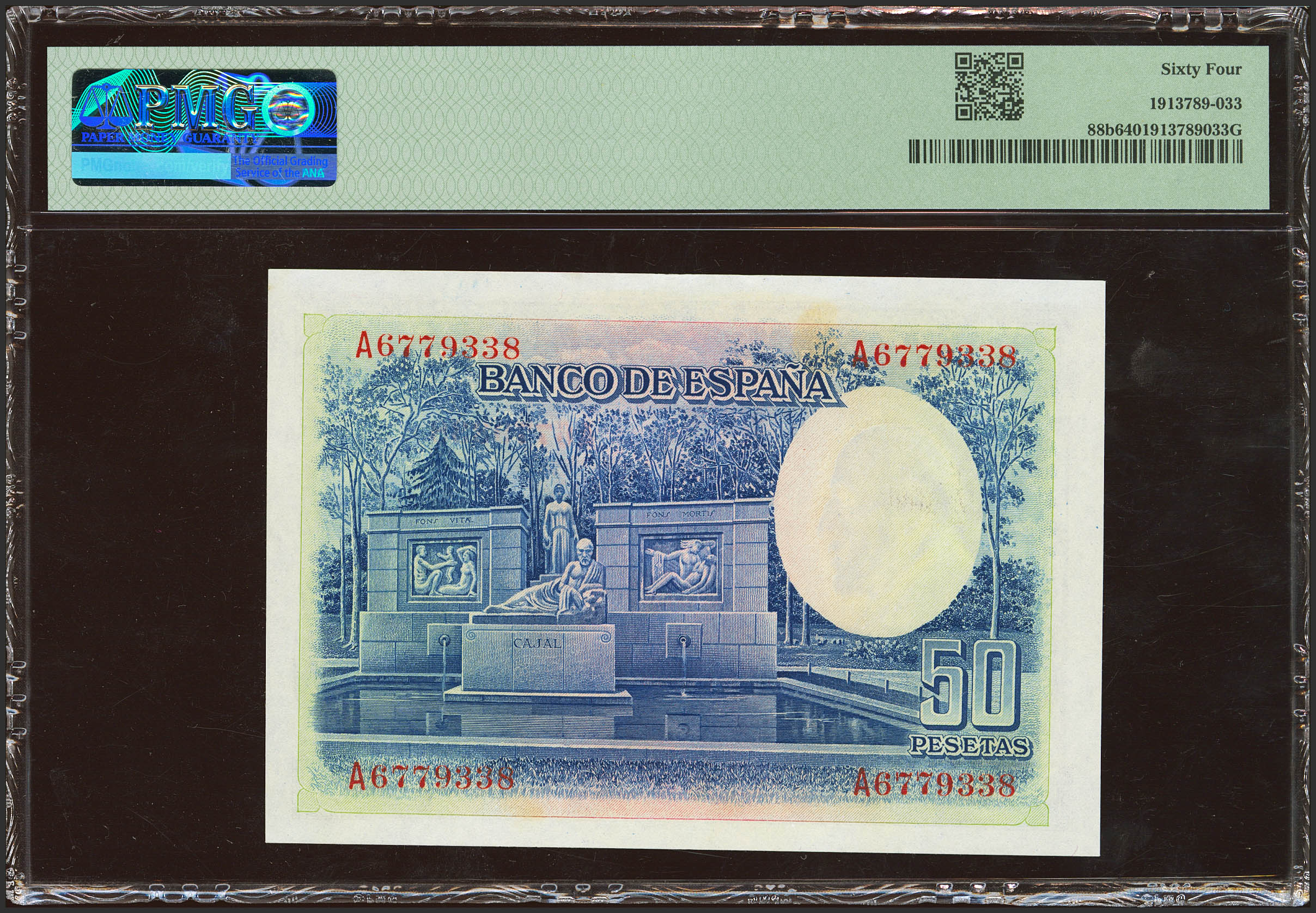 50 Pesetas. 22 de Julio de 1935. Serie A. (Edifil 2023: 366a, Pick: 88b). SC. Encapsulado PMG64.