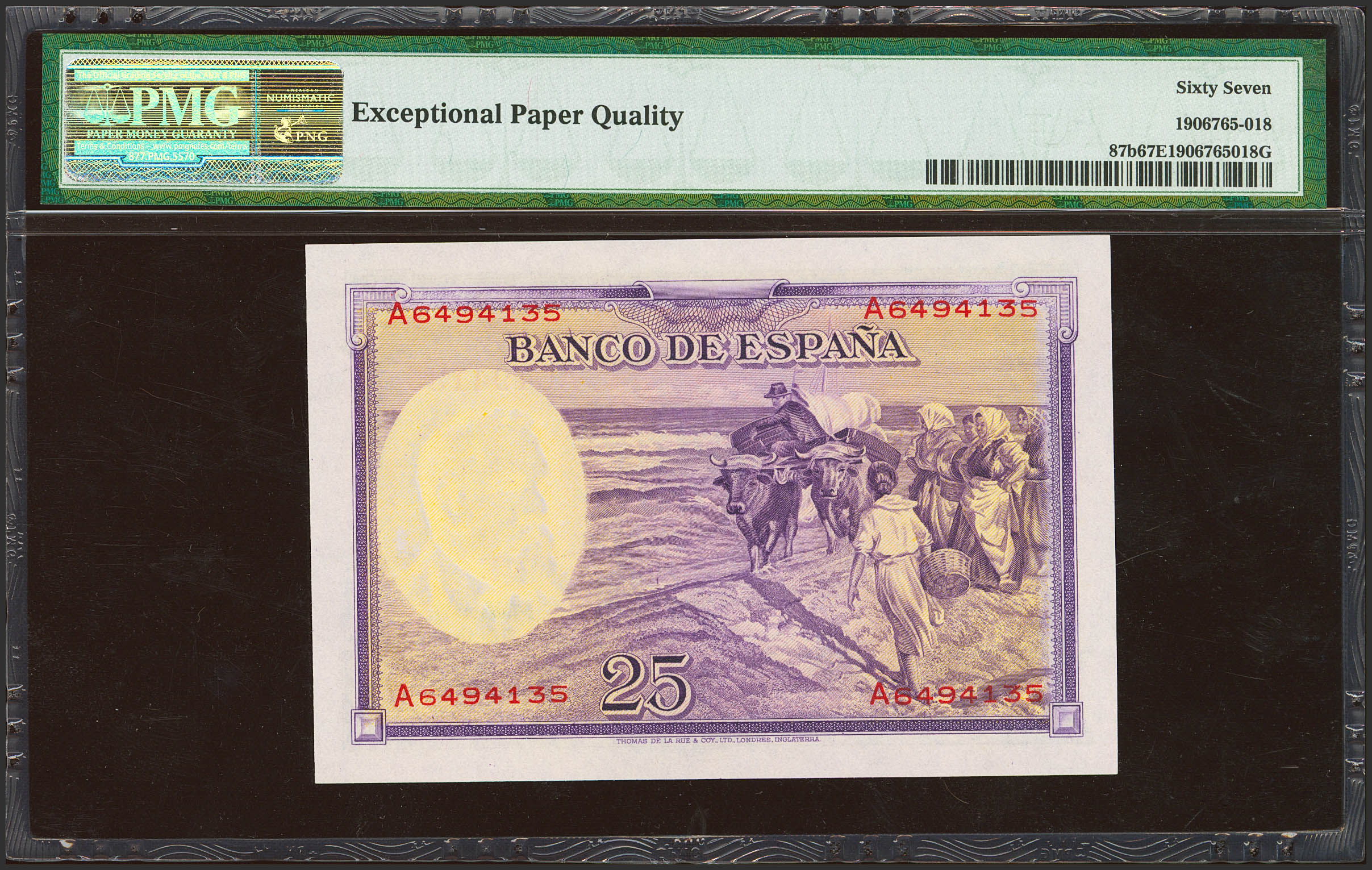 25 Pesetas. 31 de Agosto de 1935. Serie A. (Edifil 2017: 367a). Extraordinariamente raro en esta calidad, apresto original. Encapsulado PMG67EPQ. SC.