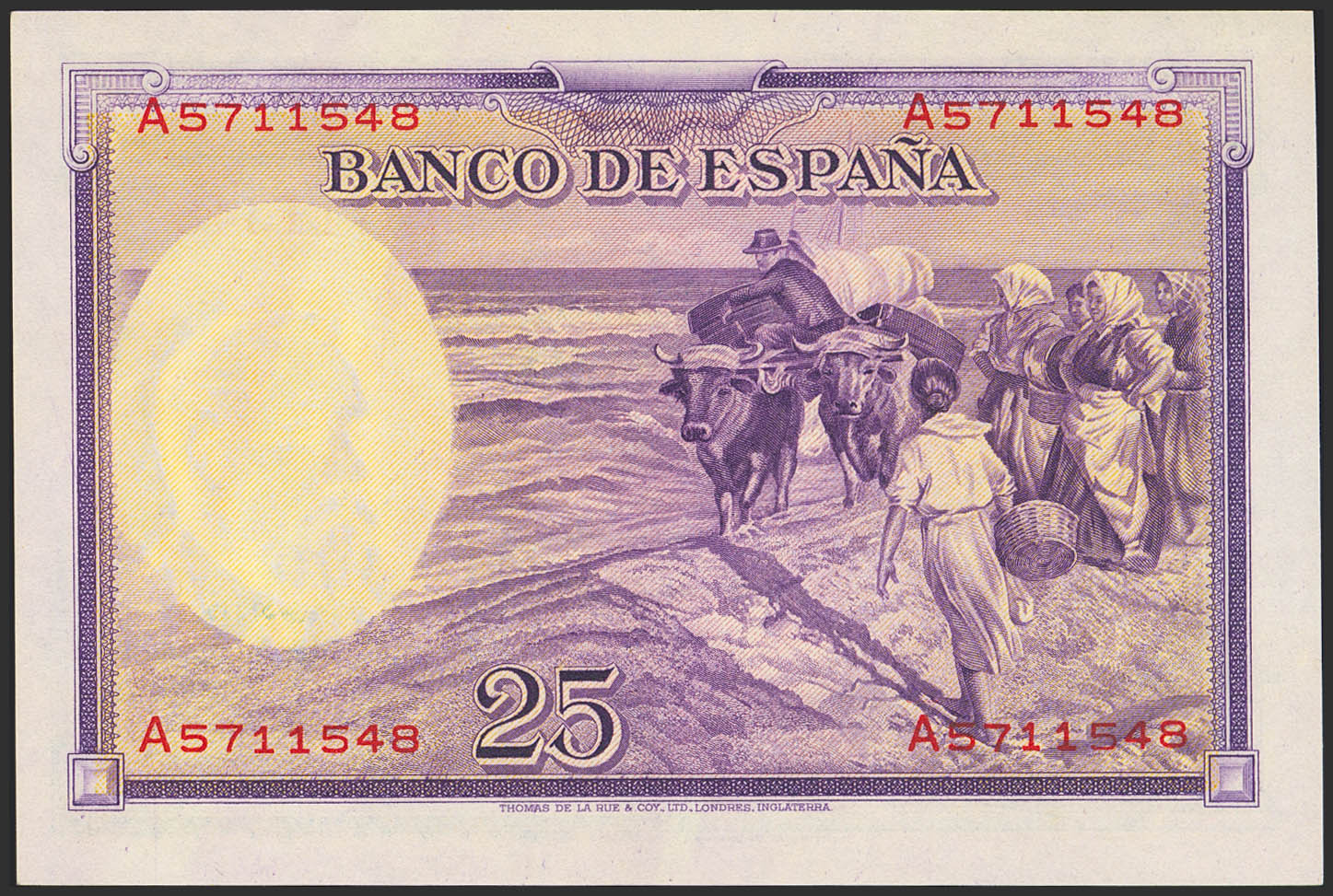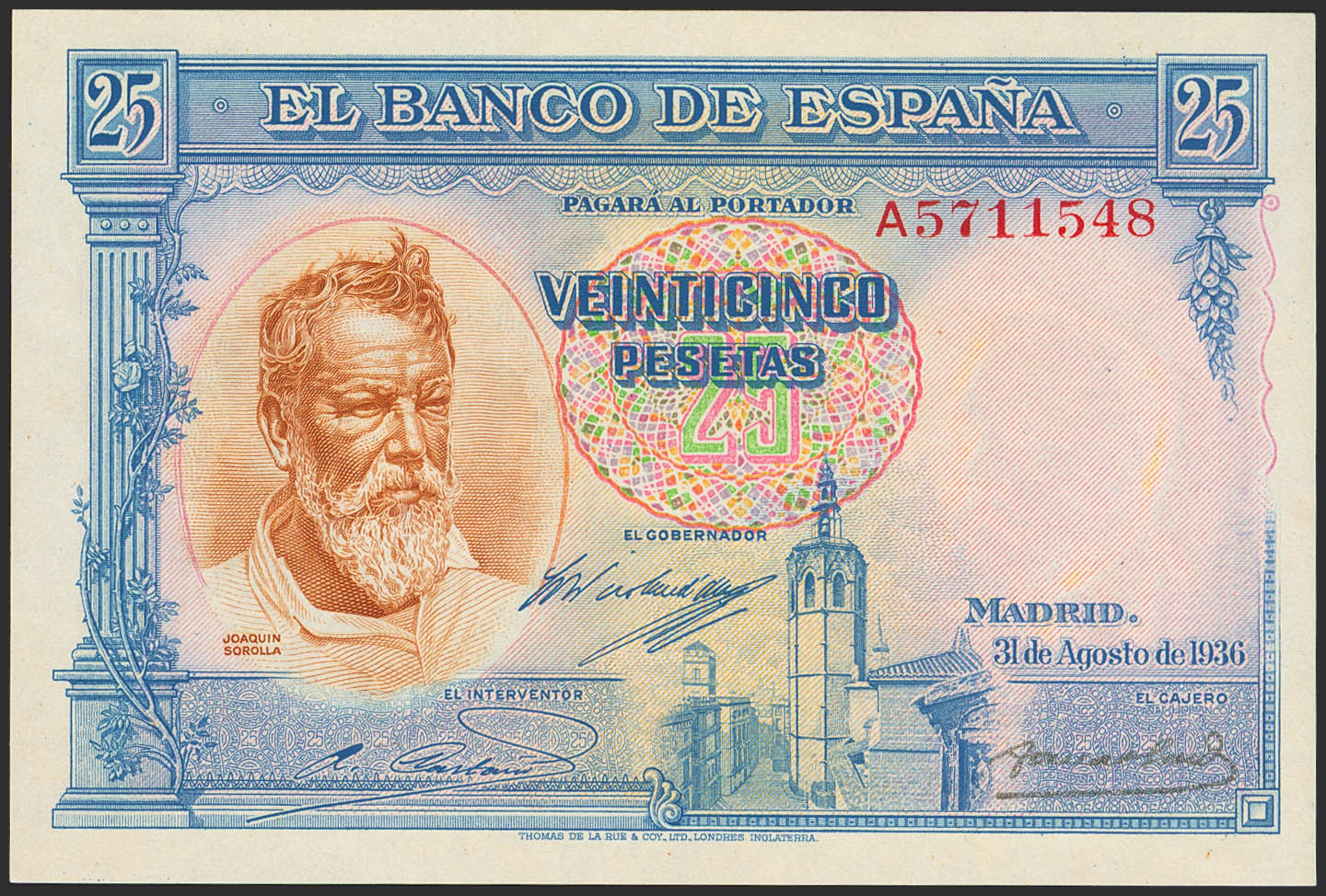 25 Pesetas. 31 de Agosto de 1936. Serie A. (Edifil 2023: 367a). Conserva todo su apresto original. SC.