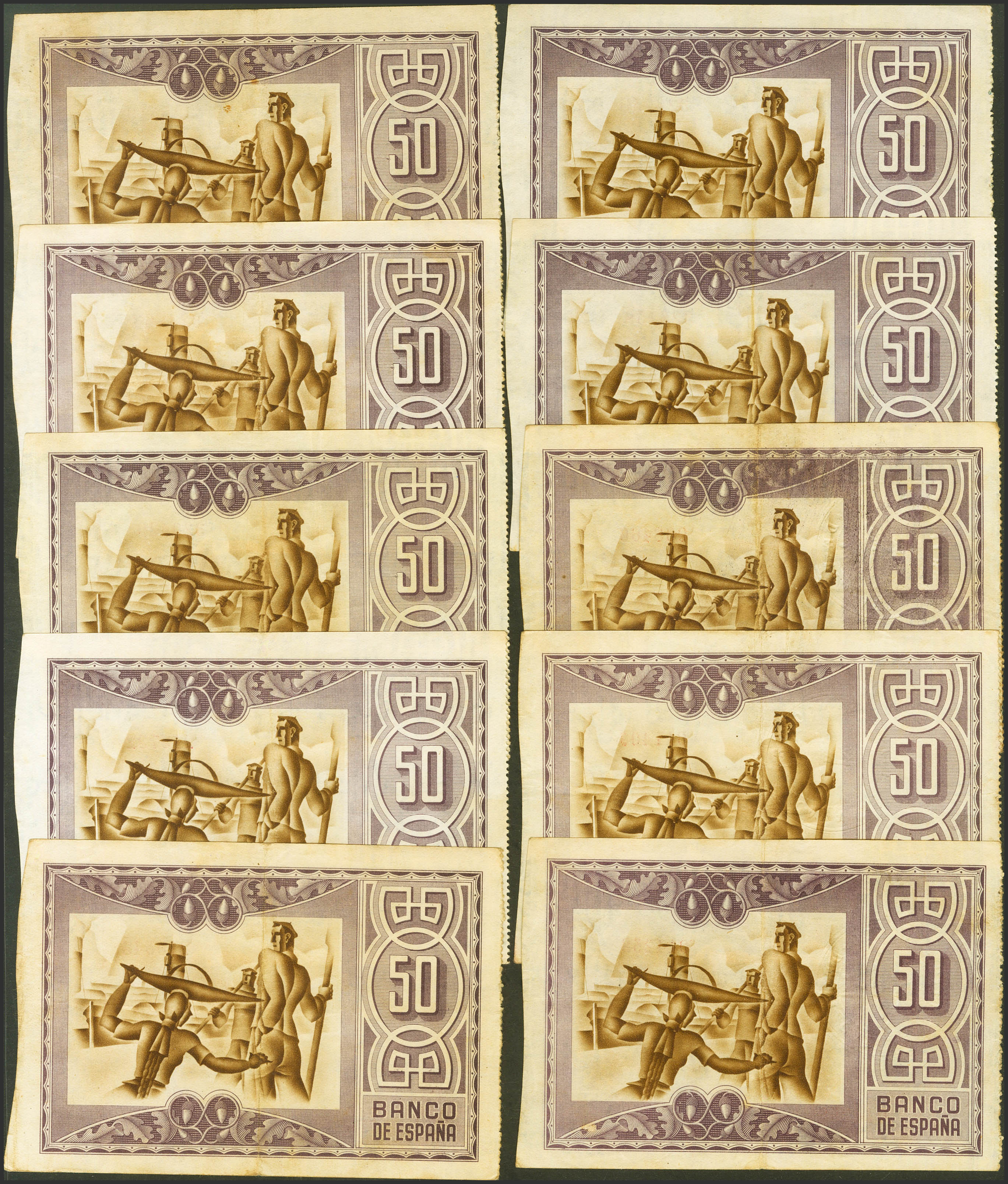 Conjunto de 10 billetes de 50 Pesetas del Banco de Bilbao, emitidos el 1 de Enero de 1937, todos ellos sin serie y con diversas antefirmas. (Edifil 2023: 389). EBC/EBC-.