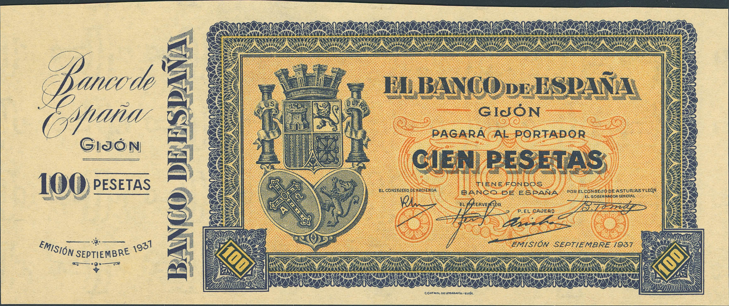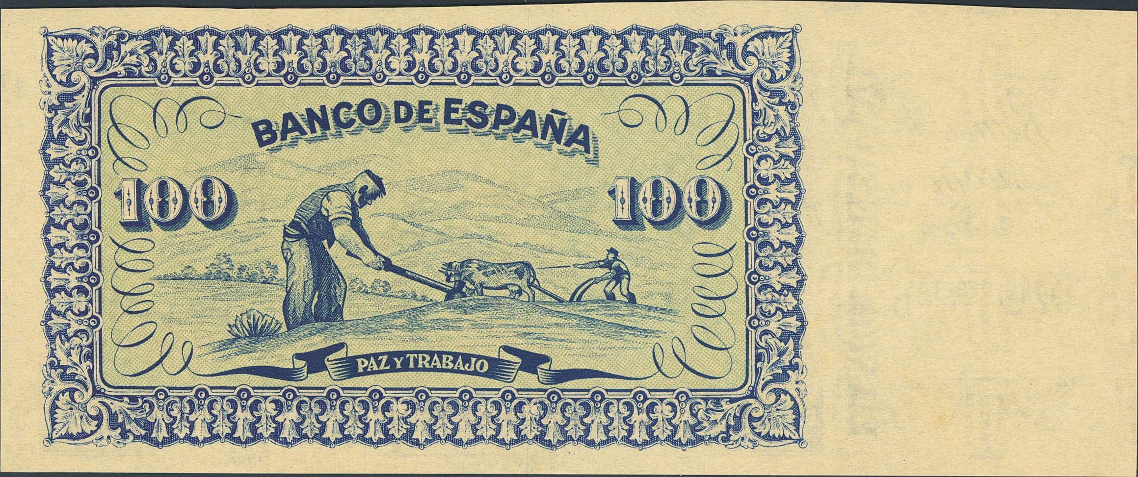 100 Pesetas. Septiembre 1937. Sin serie y con matriz a izquierda. (Edifil 2023: 399a). Apresto original. SC.