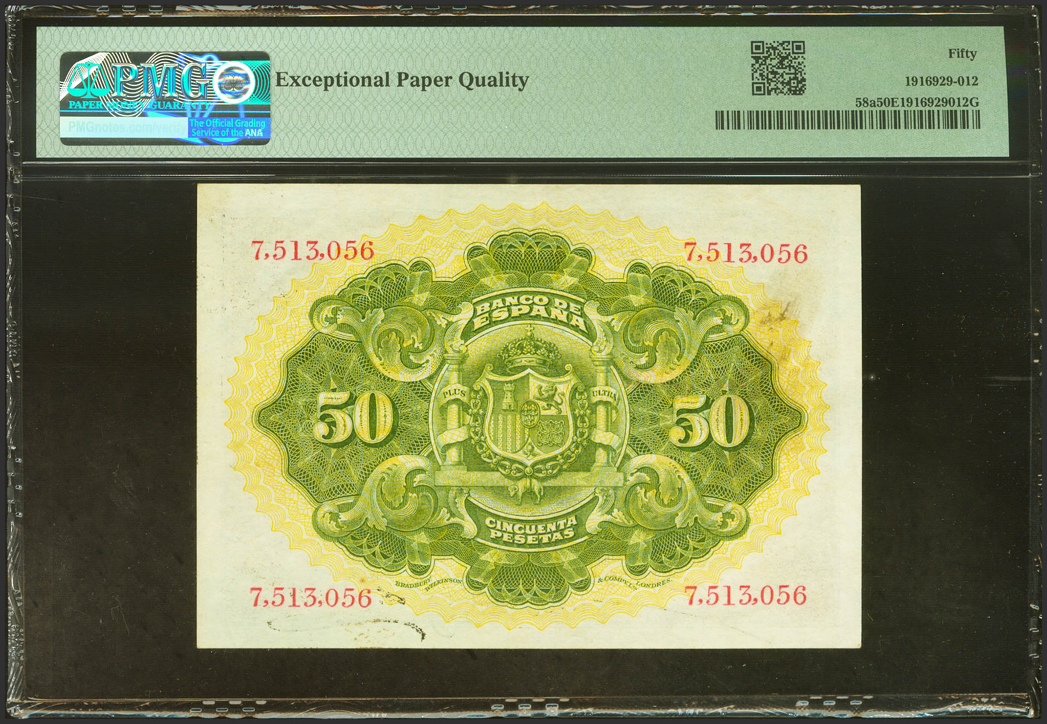 50 Pesetas. 24 de Septiembre de 1906. Sin serie. (Edifil 2023: 315, Pick: 58a). Inusual, apresto original. EBC. Encapsulado PMG50EPQ.