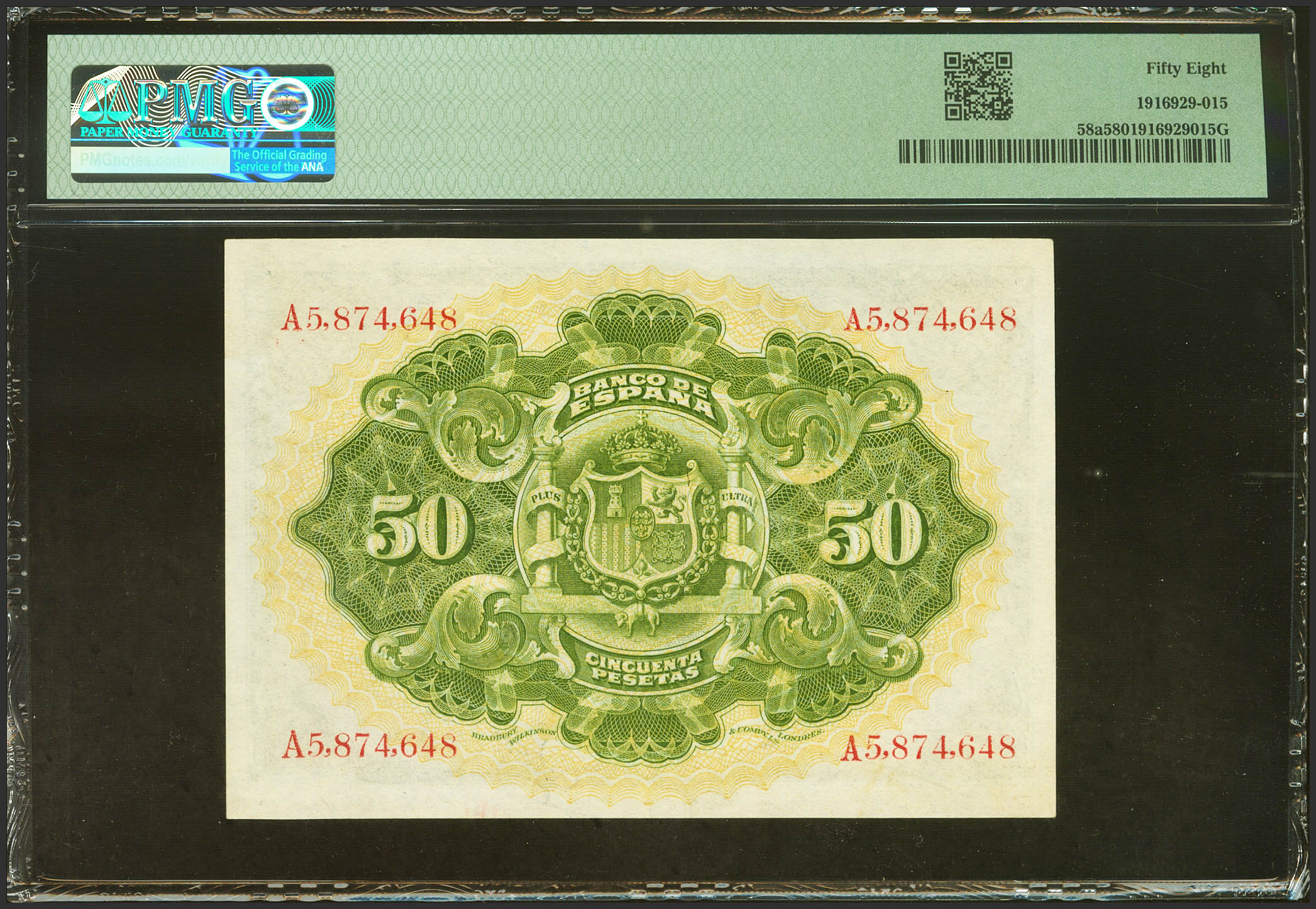 50 Pesetas. 24 de Septiembre de 1906. Serie A. (Edifil 2023: 315a, Pick: 58a). EBC++. Encapsulado PMG58.