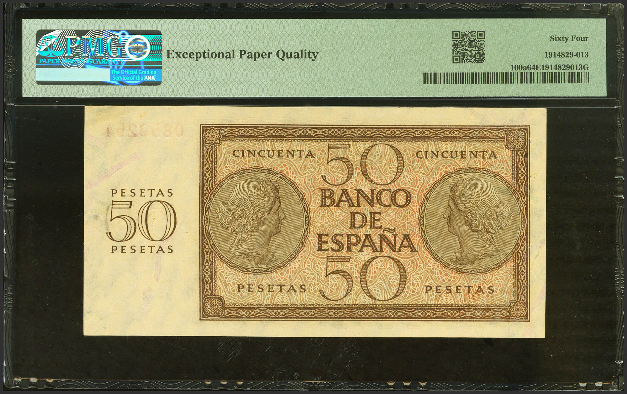 50 Pesetas. 21 de Noviembre de 1936. Serie O. (Edifil 2021: 420a). Apresto original. SC. Encapsulado PMG64EPQ.