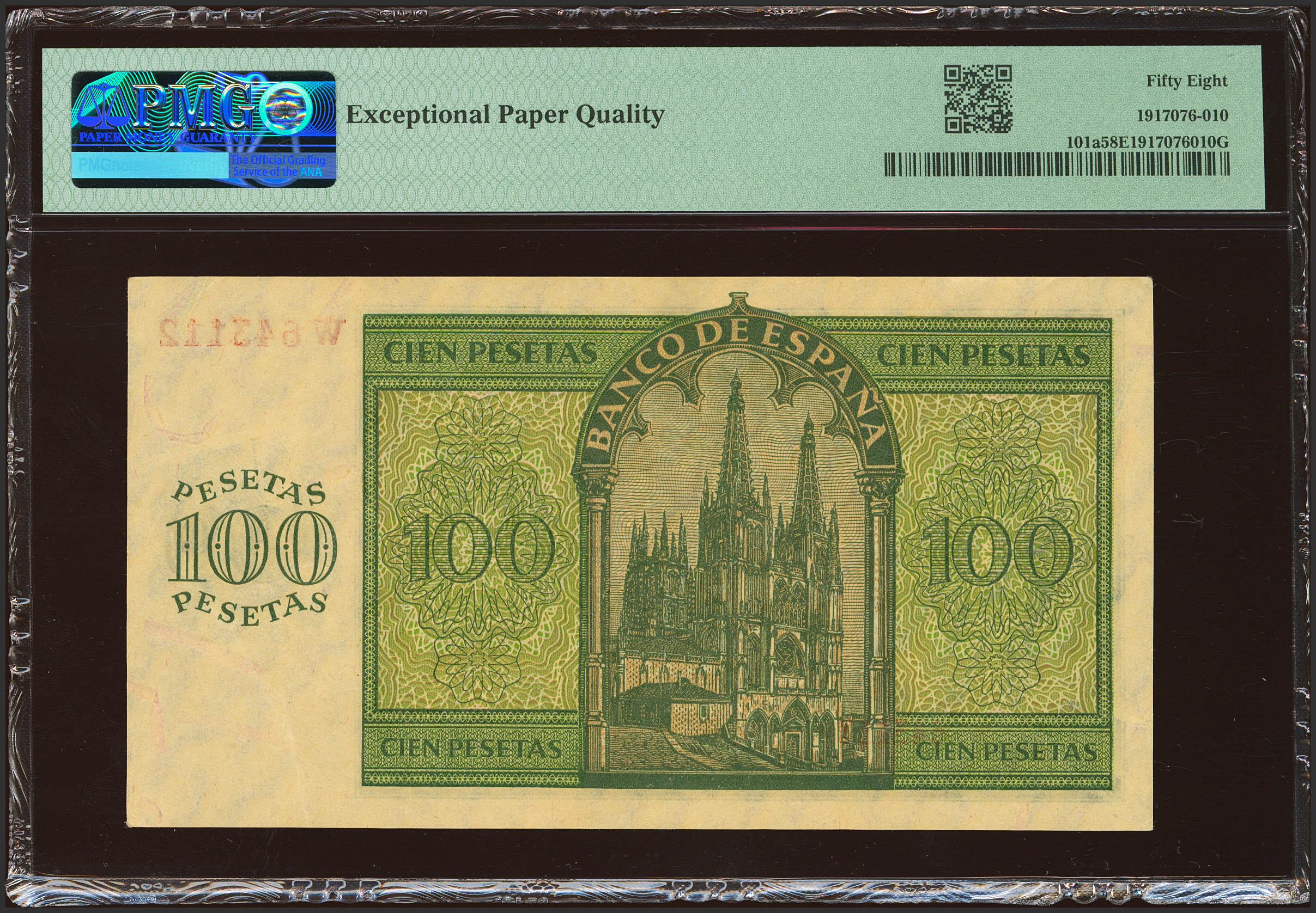 100 Pesetas. 21 de Noviembre de 1936. Serie W. (Edifil 2023: 421a, Pick: 101a). Apresto original. EBC+++. Encapsulado PMG58EPQ.