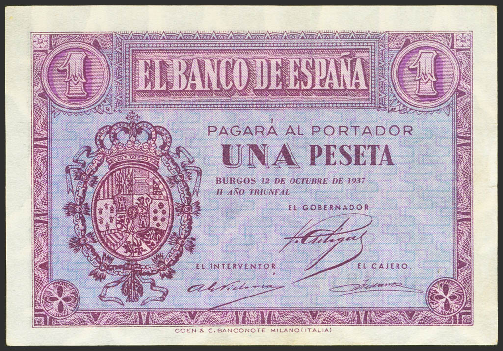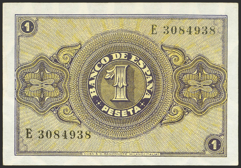 1 Peseta. 12 de Octubre de 1937. Serie E. (Edifil 2023: 425a). Conserva todo su apresto original. SC.