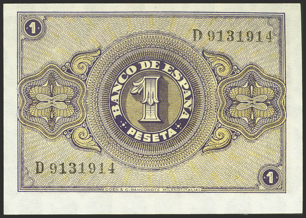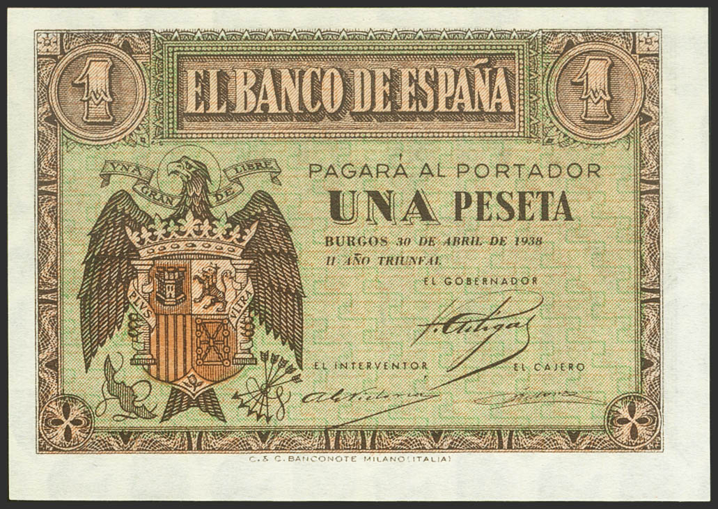 1 Peseta. 30 de Abril de 1938. Serie D. (Edifil 2021: 428a). Apresto original. SC-.