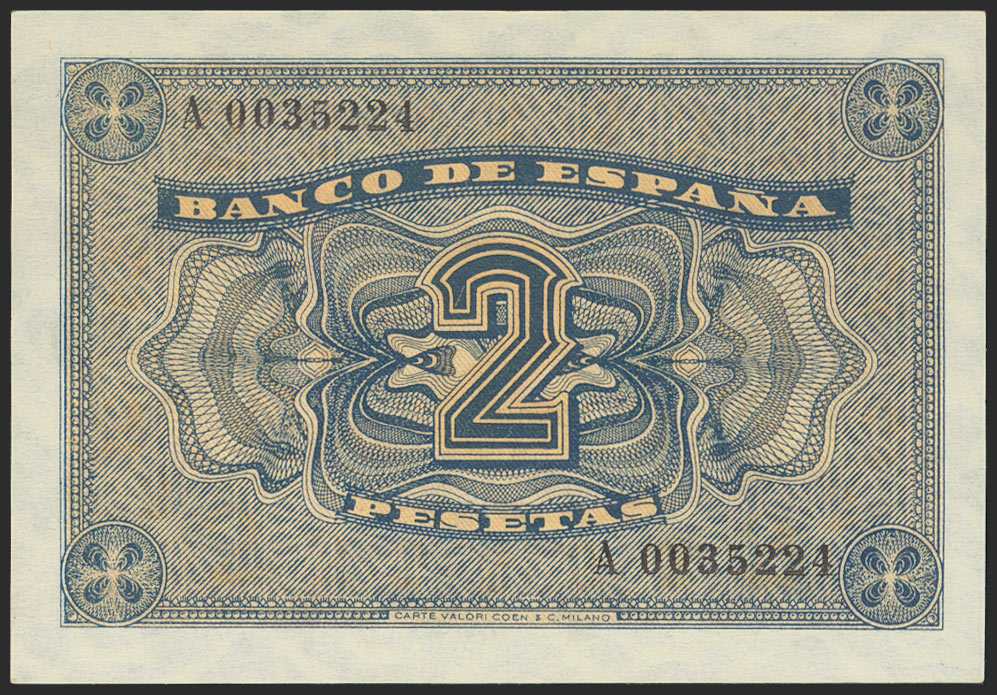 2 Pesetas. 30 de Abril de 1938. Serie A. (Edifil 2021: 429). Apresto original. SC-.
