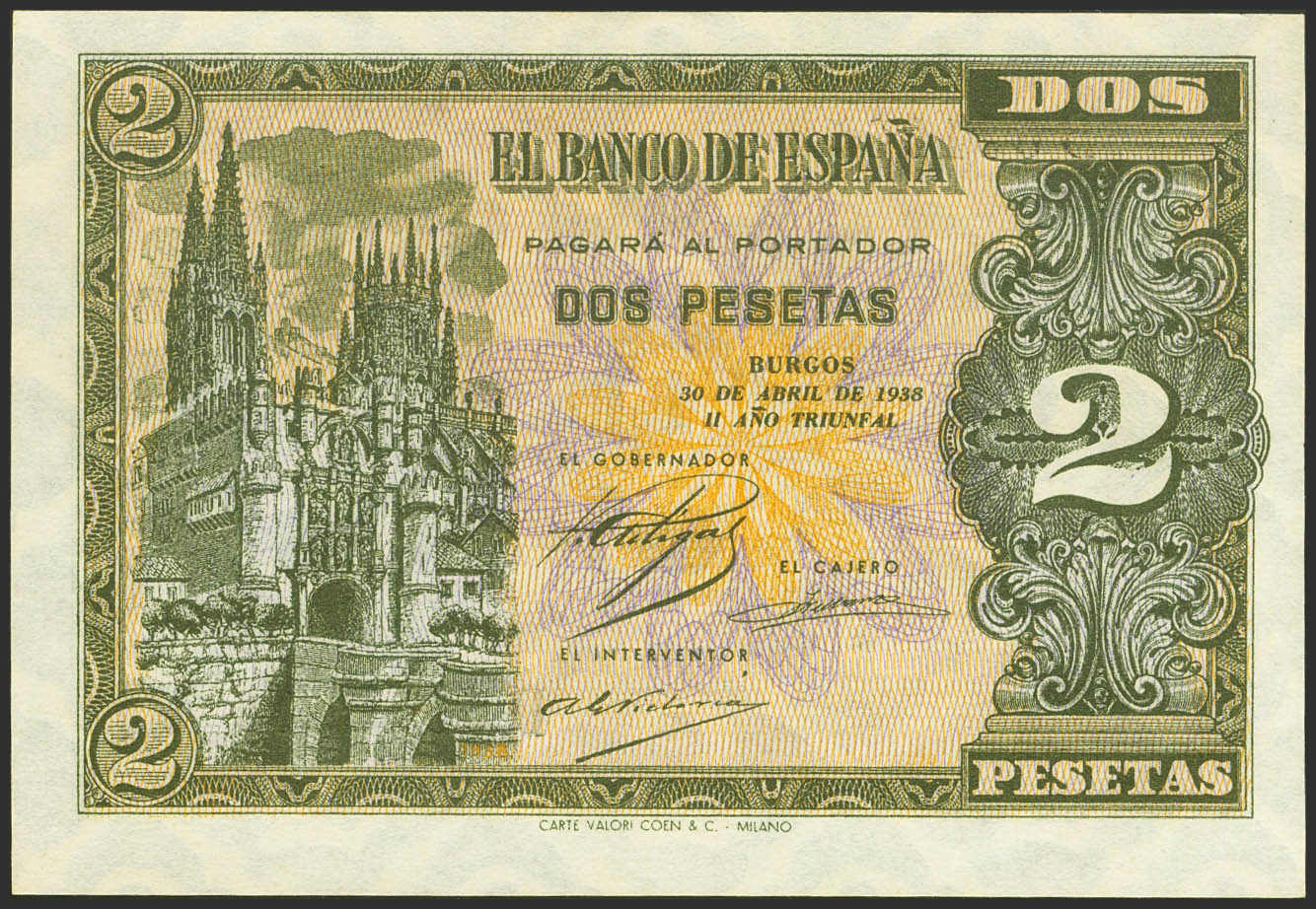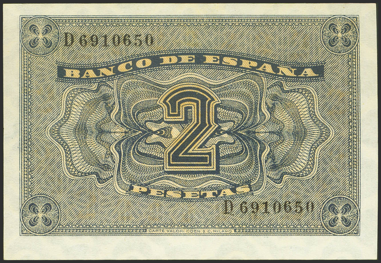 2 Pesetas. 30 de Abril de 1938. Serie D. (Edifil 2021: 429a). Apresto original. SC-.