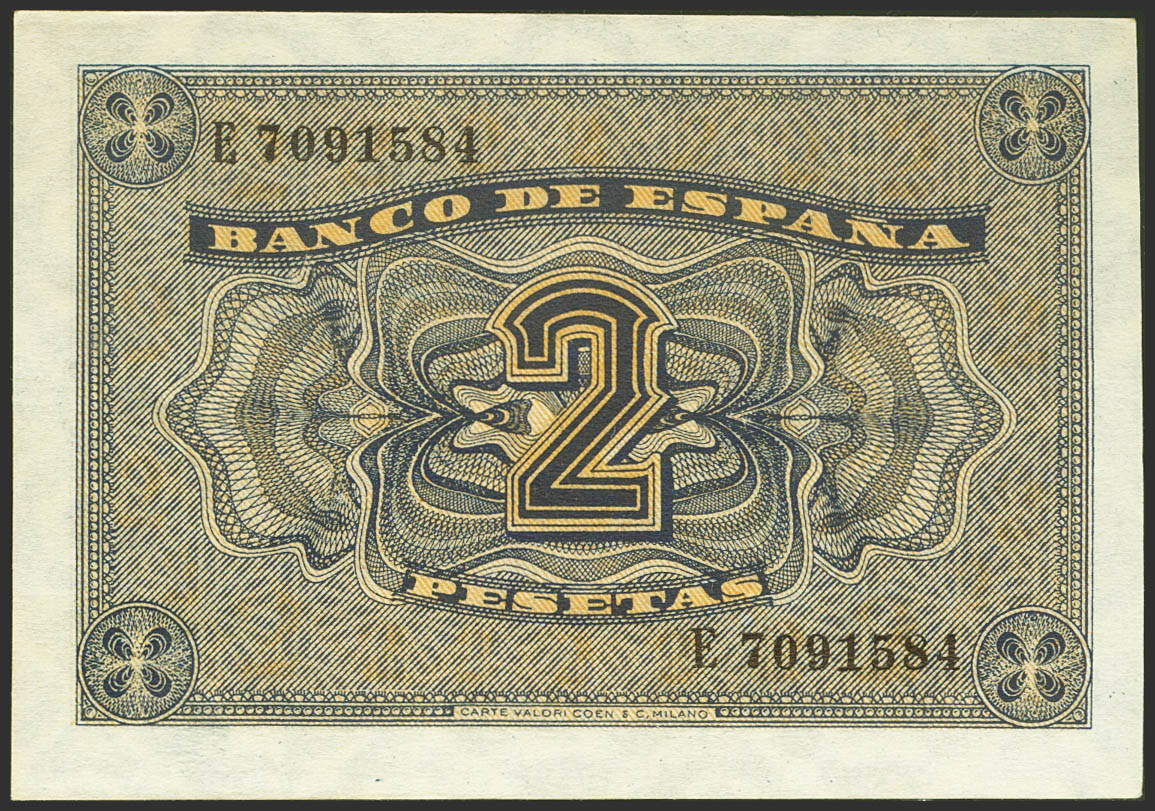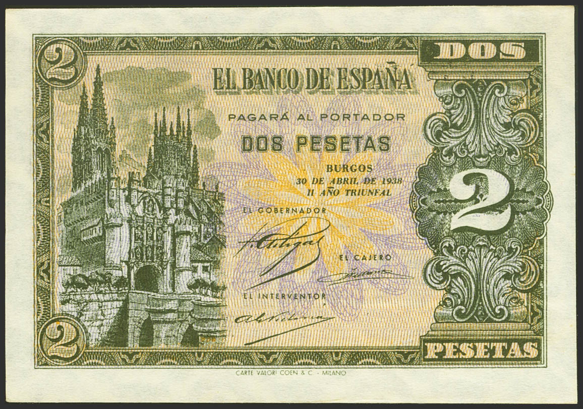 2 Pesetas. 30 de Abril de 1938. Serie E. (Edifil 2021: 429a). Apresto original. SC.