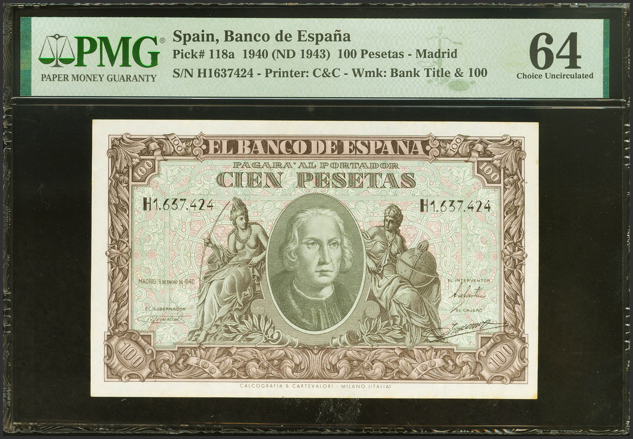 100 Pesetas. 9 de Enero de 1940. Serie H. (Edifil 2021: 438a, Pick: 118a). SC. Encapsulado PMG64.