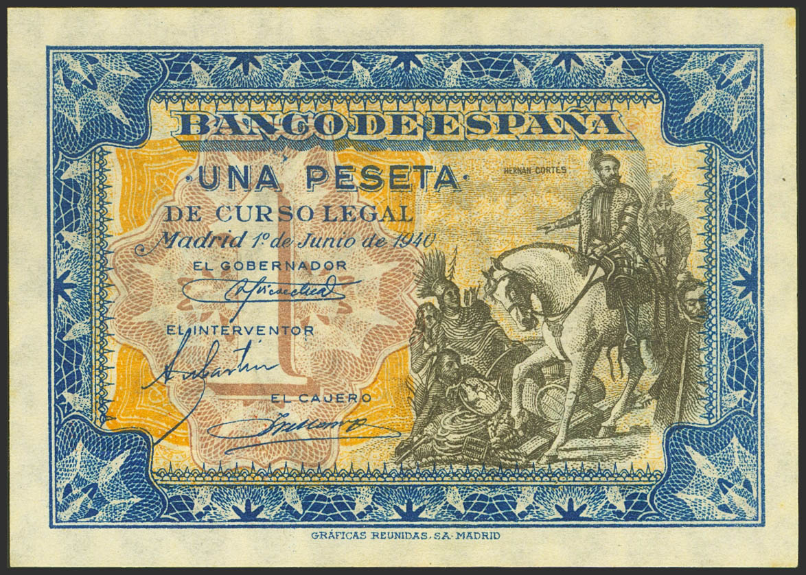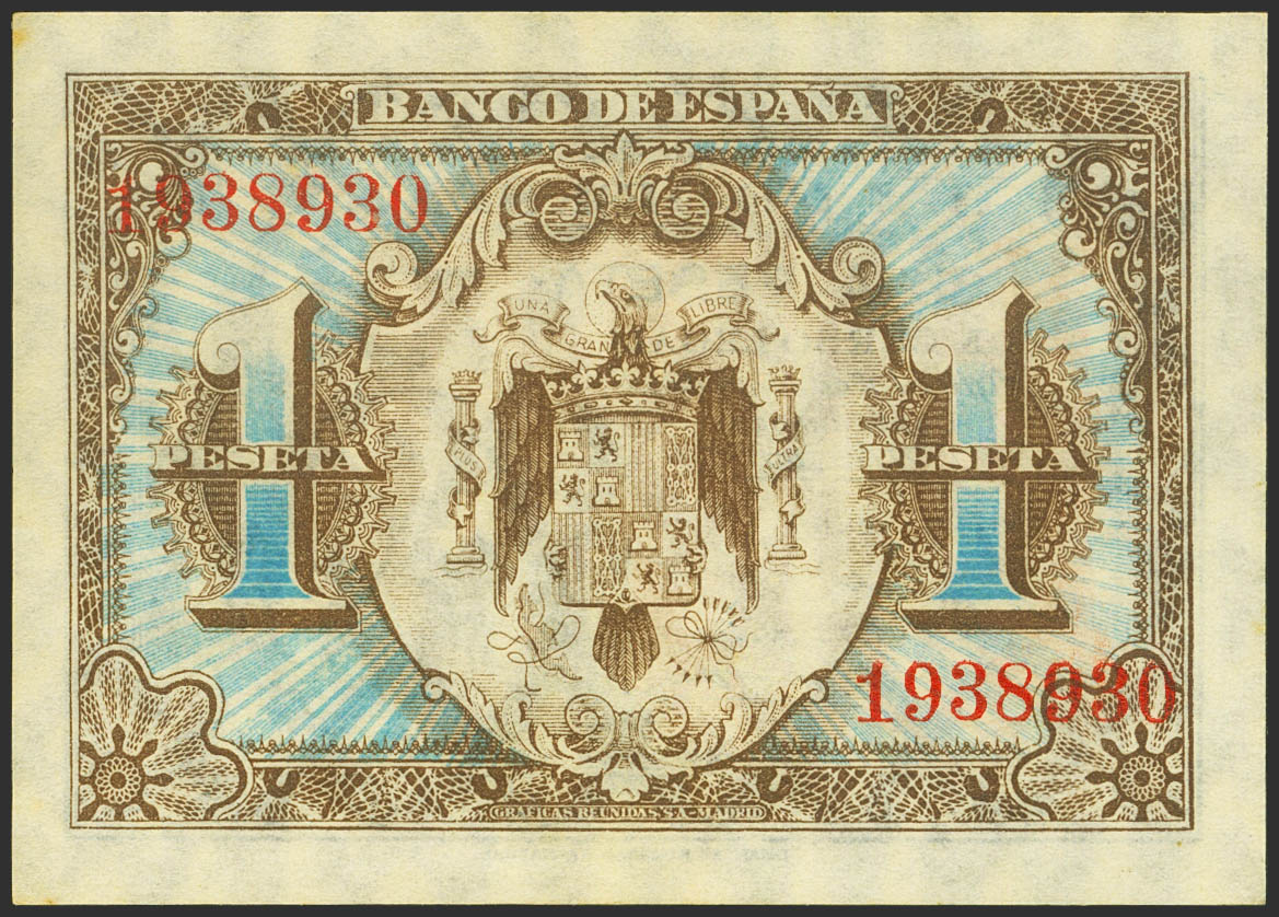 1 Peseta. 1 de Junio de 1940. Sin serie. (Edifil 2021: 441, Pick: 121a). Inusual, conserva todo su apresto original. SC.