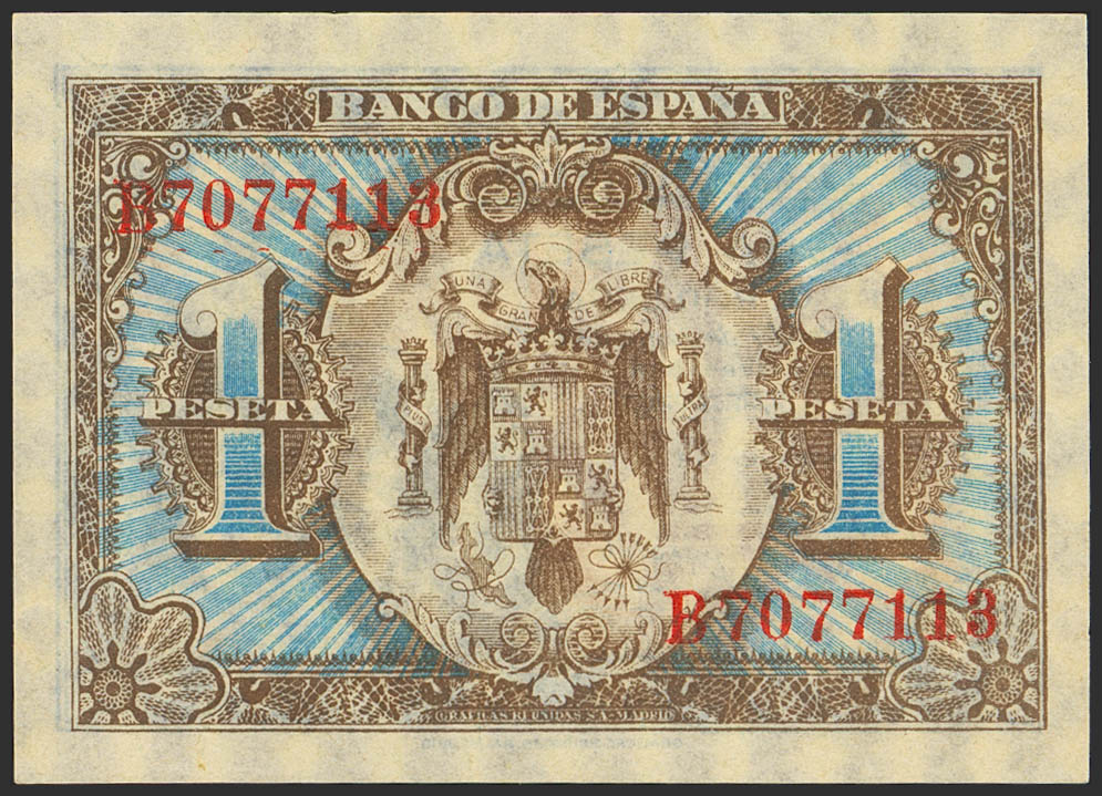 1 Peseta. 1 de Junio de 1940. Serie B. (Edifil 2023: 441a). Conserva todo el apresto original. SC.