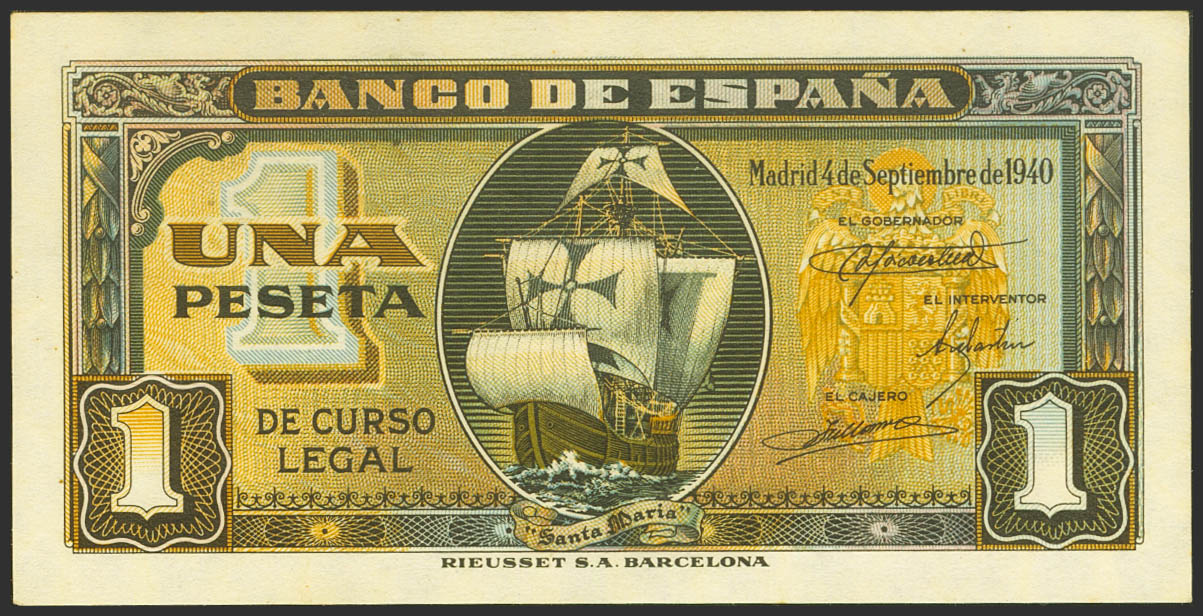 1 Peseta. 4 de Septiembre de 1940. Serie H. (Edifil 2023: 442a). Conserva todo su apresto original. SC.