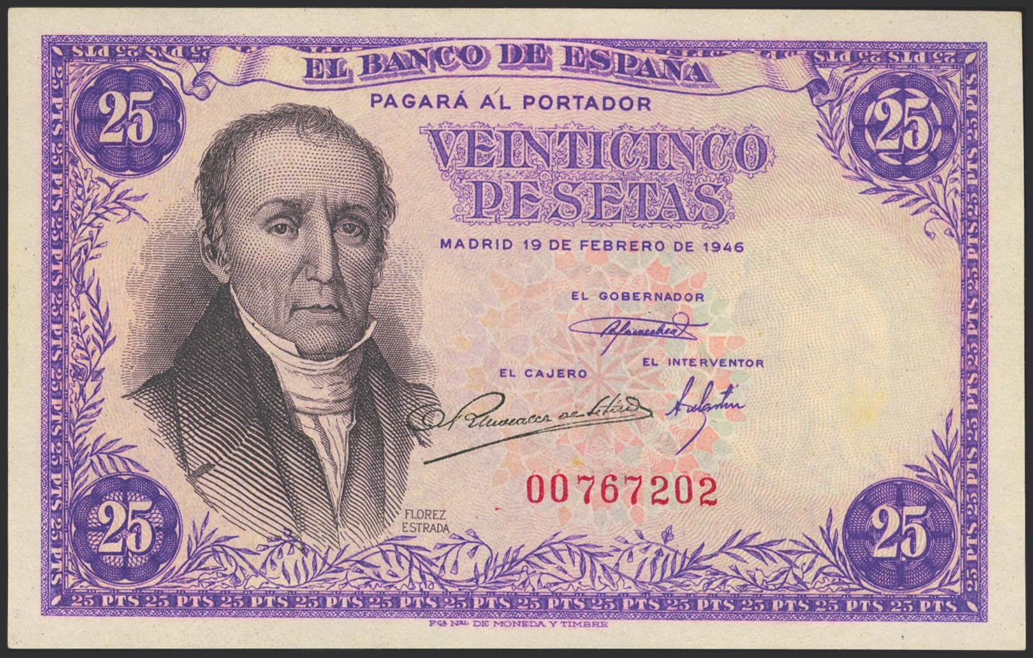 25 Pesetas. 19 de Febrero de 1949. Sin serie. (Edifil 2021: 450). Conserva gran parte de su apresto original. EBC+.