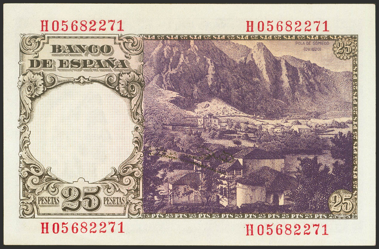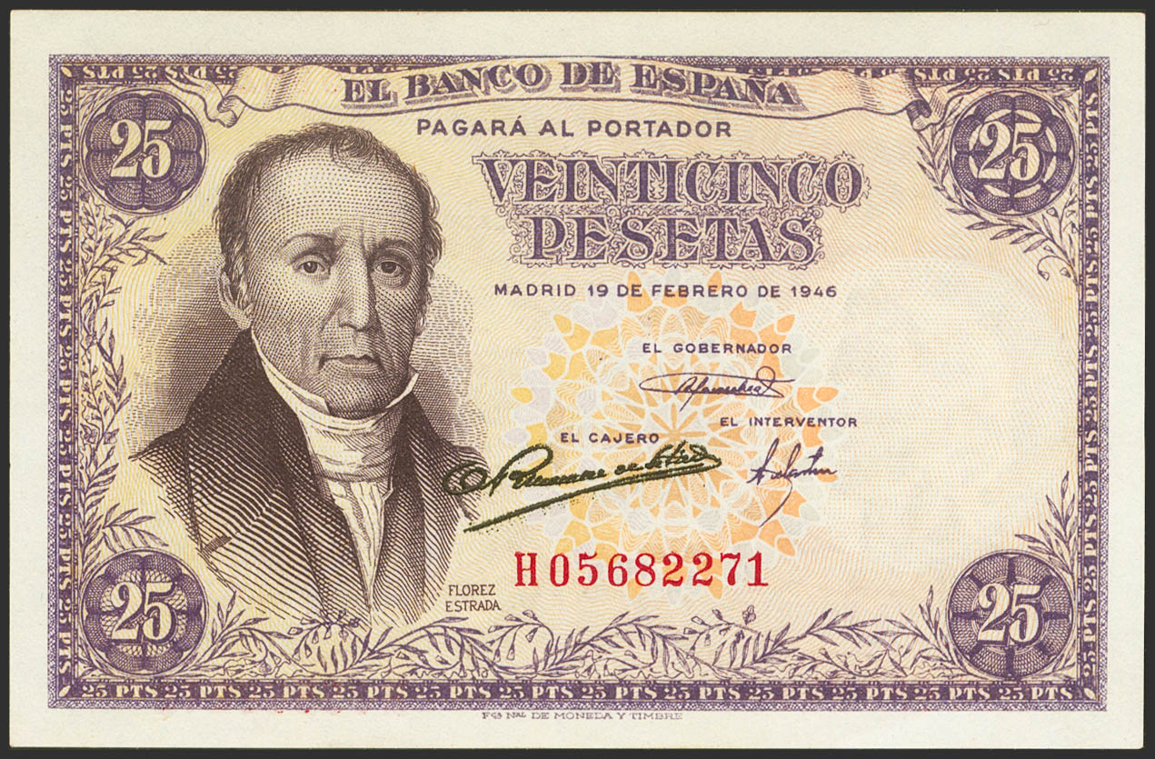 25 Pesetas. 19 de Febrero de 1946. Serie H. (Edifil 2021: 450a). Apresto original. SC.