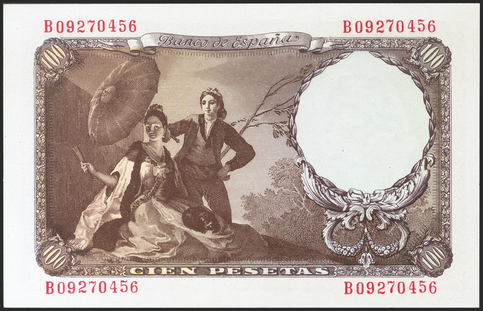 100 Pesetas. 19 de Febrero de 1946. Serie B. (Edifil 2021: 451b). Conserva todo su apresto original. SC.