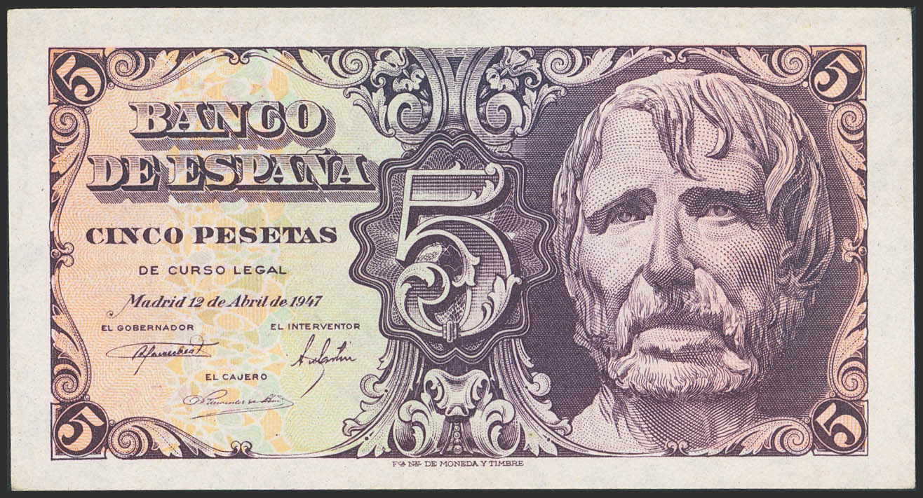 5 Pesetas. 12 de Abril de 1947. Sin serie. (Edifil 2023: 454). Apresto original. SC-.