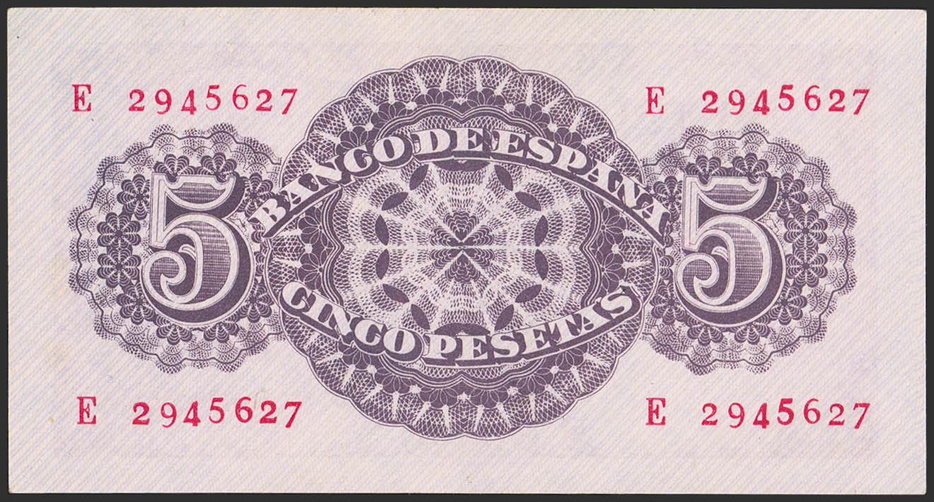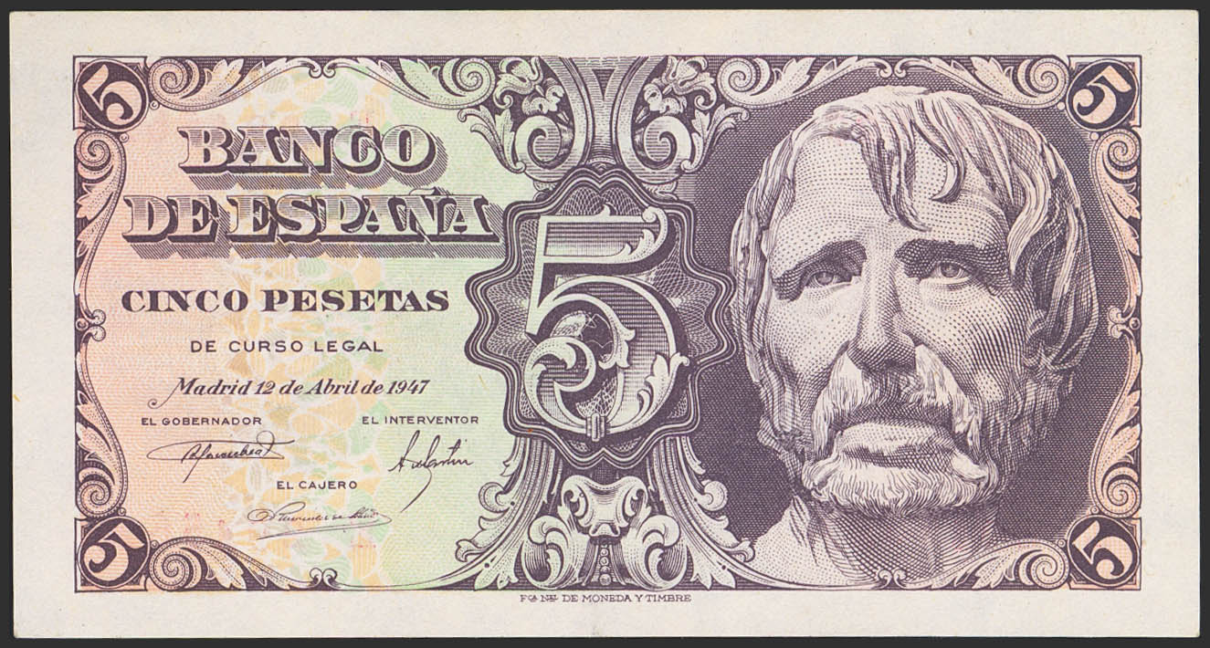 5 Pesetas. 12 de Abril de 1947. Serie E, última serie emitida. (Edifil 2023: 454b). Apresto original. SC.