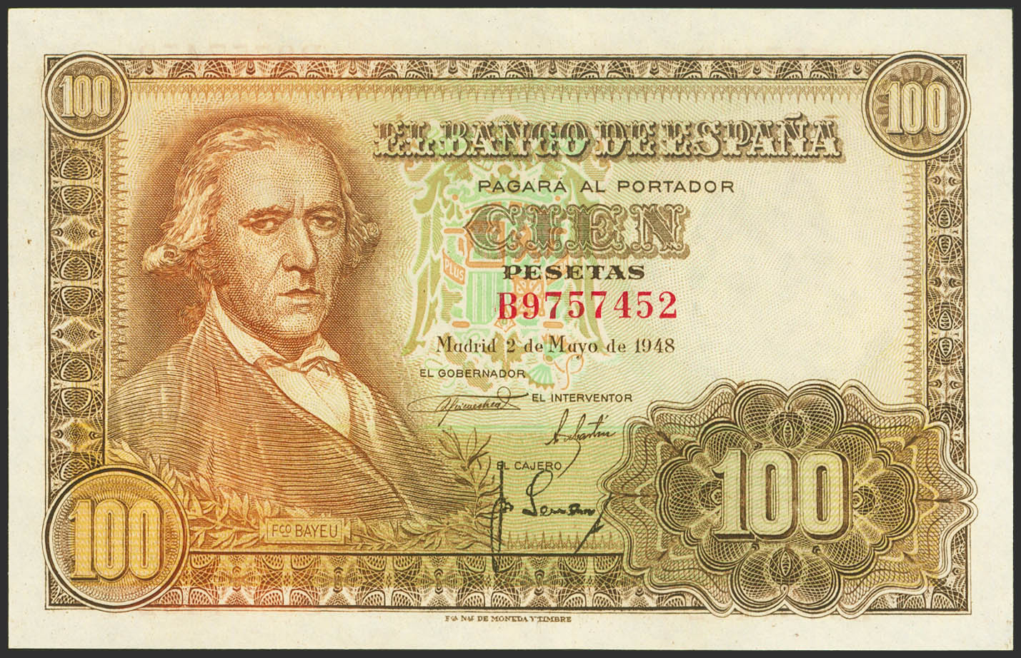 100 Pesetas. 2 de Mayo de 1948. Serie B. (Edifil 2023: 456a). EBC.