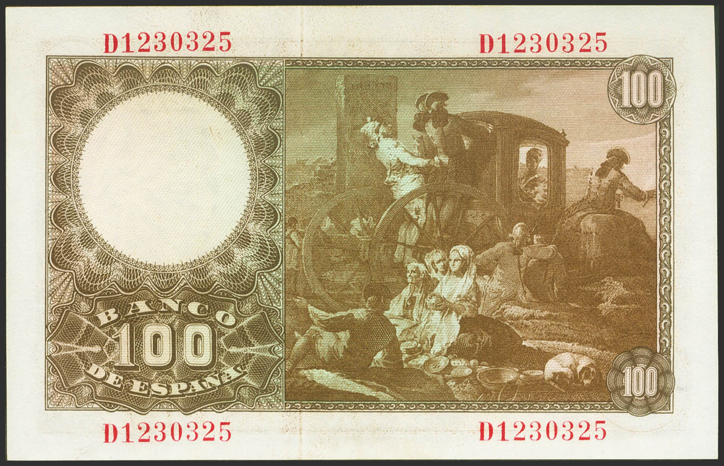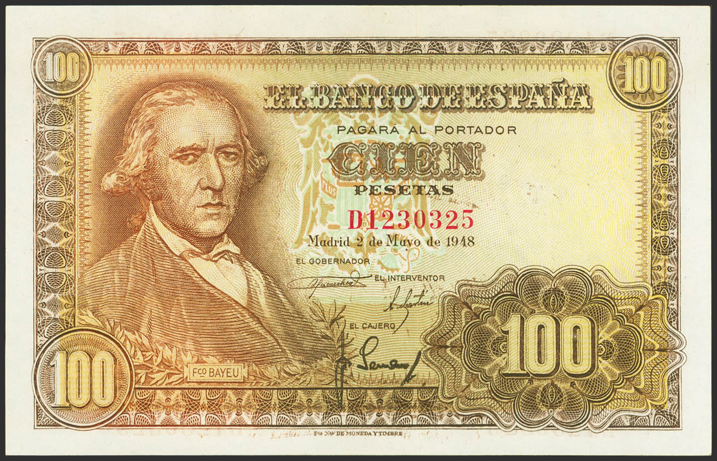 100 Pesetas. 2 de Mayo de 1948. Serie D. (Edifil 2023: 456a). Conserva gran parte del apresto original. EBC+.