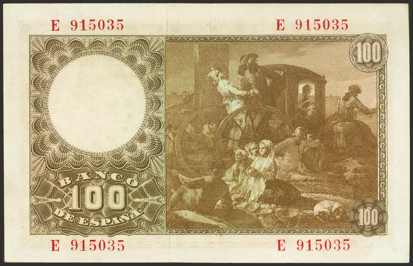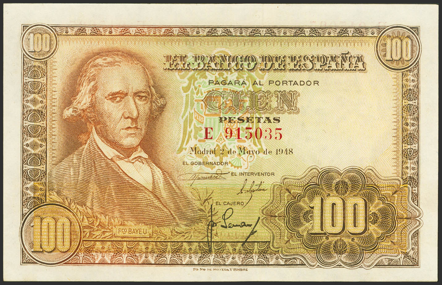 100 Pesetas. 2 de Mayo de 1948. Serie E. (Edifil 2023: 456a). Conserva gran parte del apresto original. EBC+.