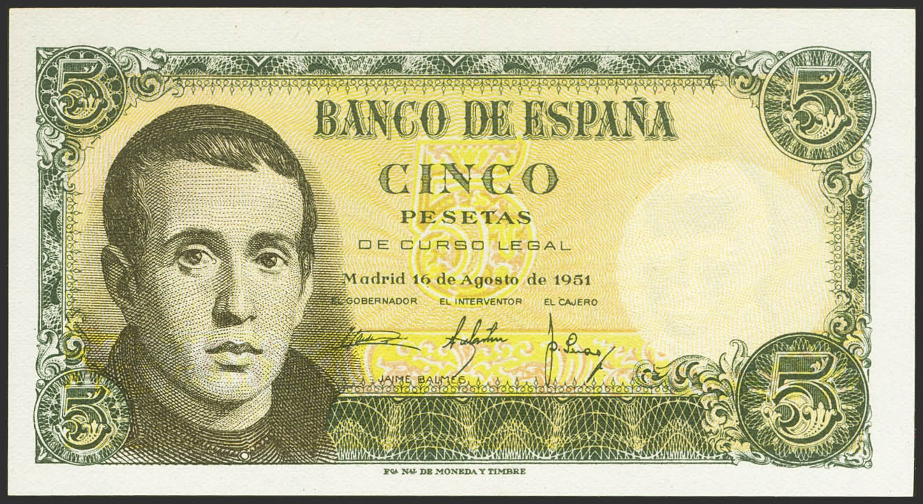 5 Pesetas. 16 de Agosto de 1951. Sin serie. (Edifil 2023: 459). Apresto original. SC.