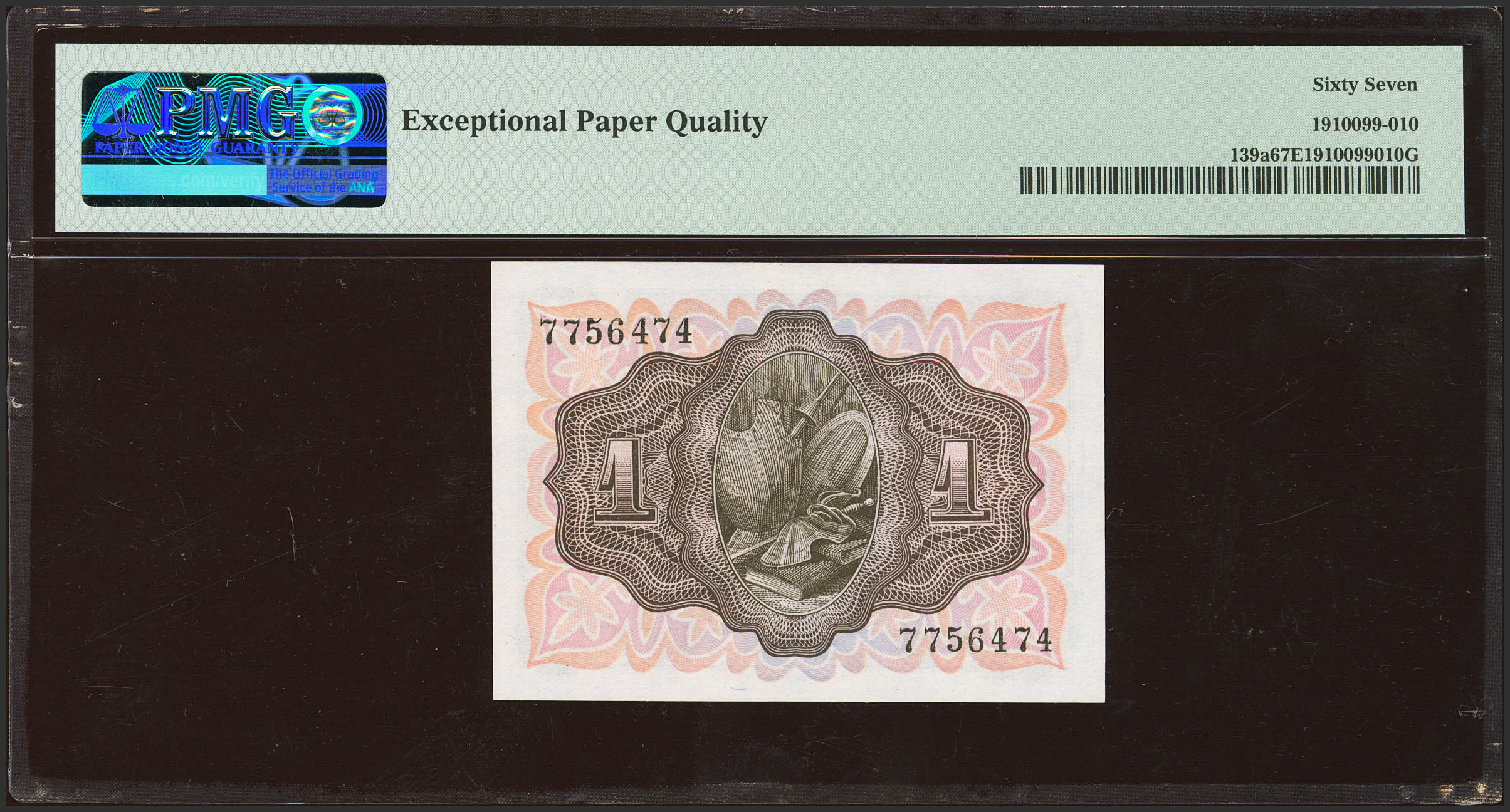 1 Pesetas. 19 de Noviembre de 1951. Sin serie. (Edifil 2023: 461, Pick: 139a). Inusual en esta calidad, apresto original. SC. Encapsulado PMG67EPQ.
