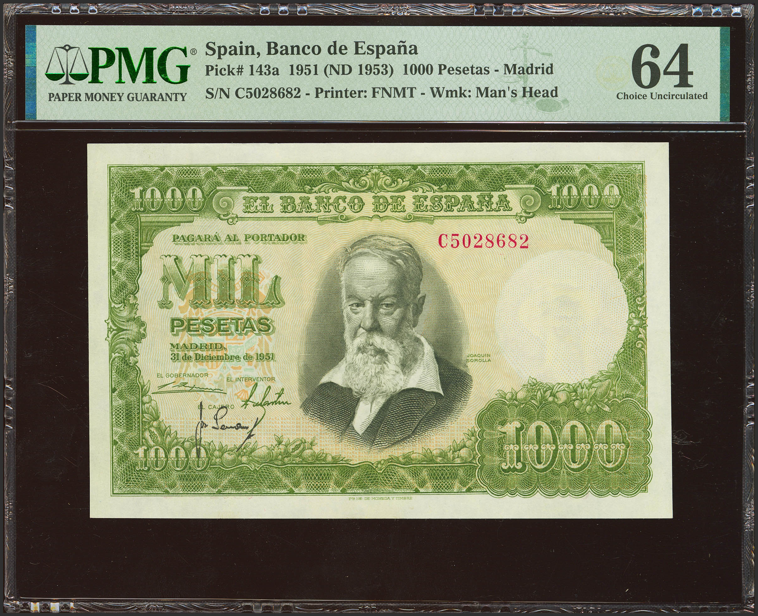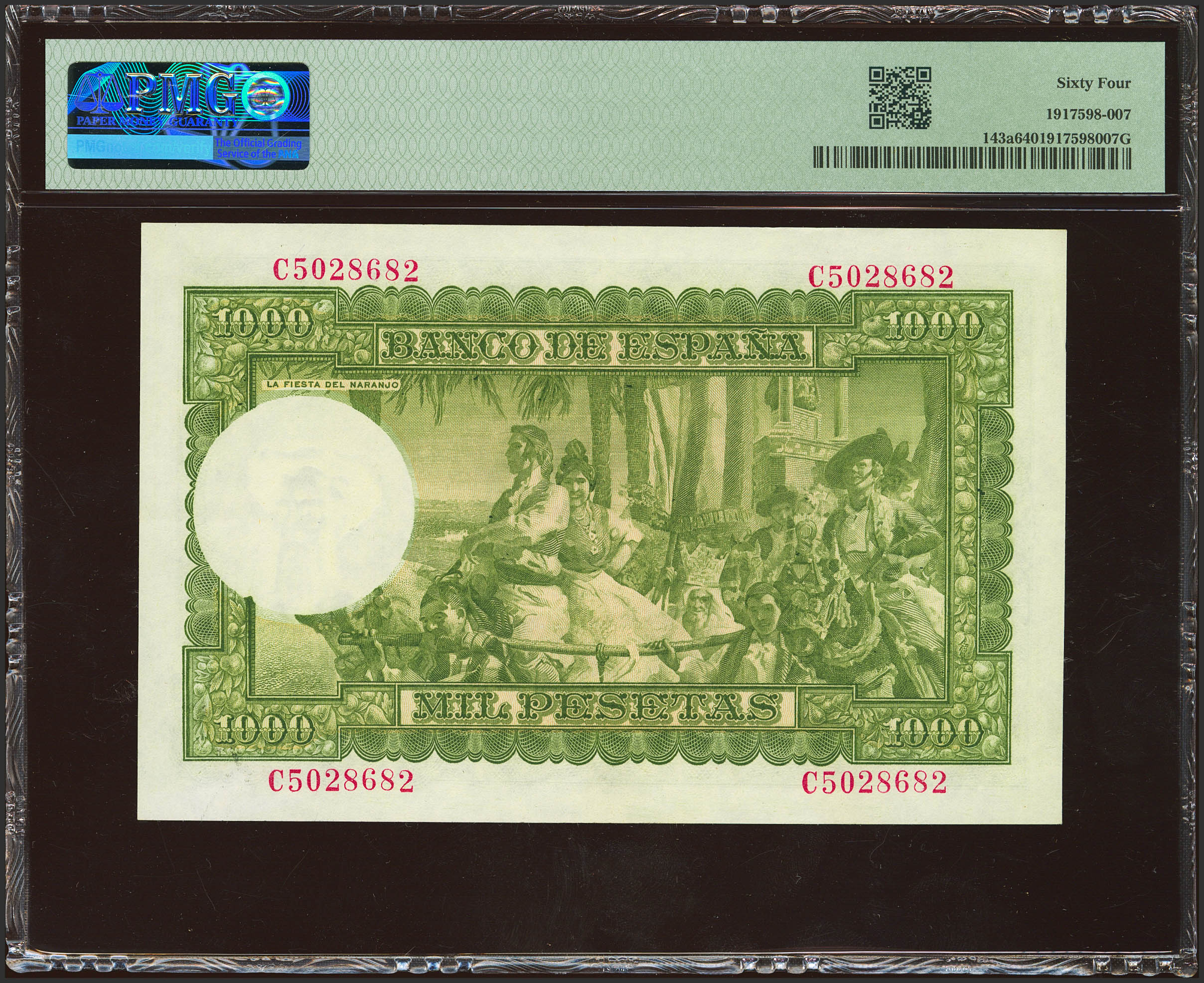 1000 Pesetas. 31 de Diciembre de 1951. Serie C, última serie emitida. (Edifil 2023: 463b, Pick: 143a). SC. Encapsulado PMG64.