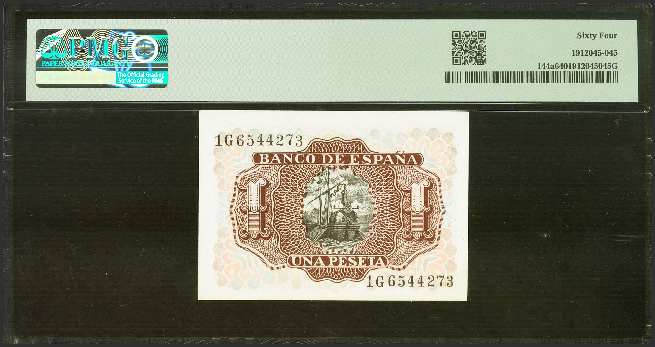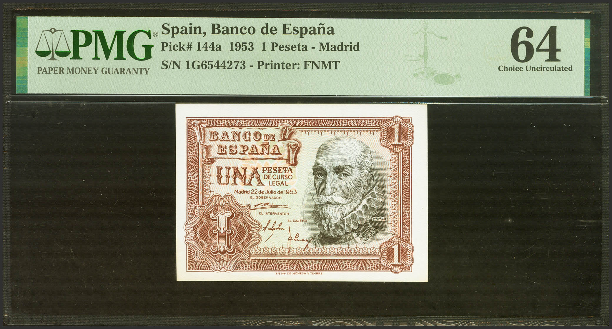 1 Peseta. 22 de Julio de 1953. Serie 1G. (Edifil 2023: 465b, Pick: 144a). SC. Encapsulado PMG64.