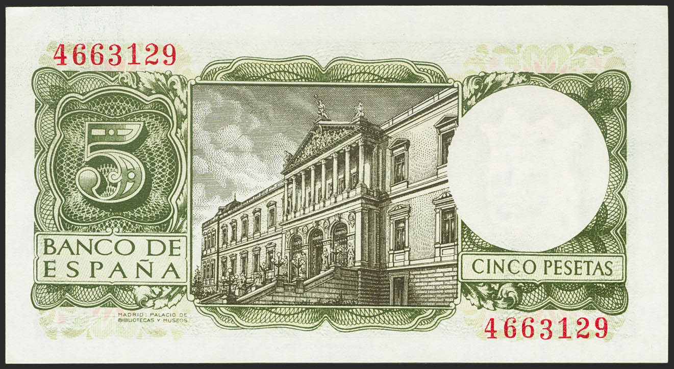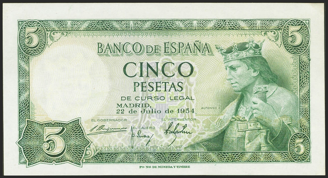 5 Pesetas. 22 de Julio de 1954. Sin serie. (Edifil 2021: 466). Conserva todo su apresto original. SC-.