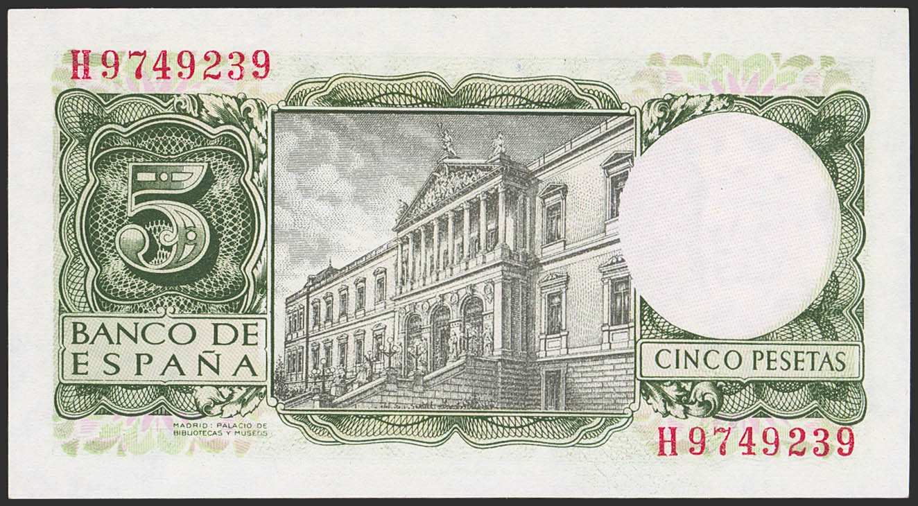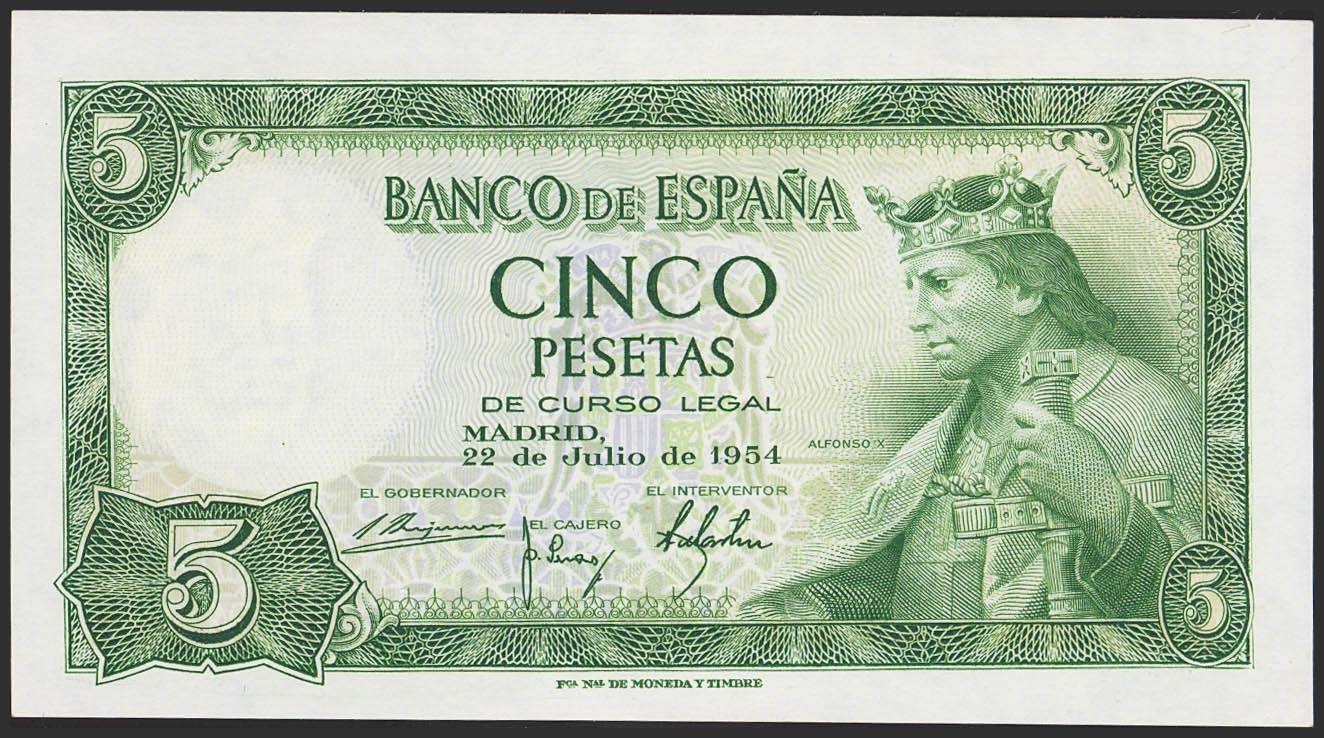 5 Pesetas. 22 de Julio de 1954. Serie H. (Edifil 2023: 466a). Apresto original. SC.