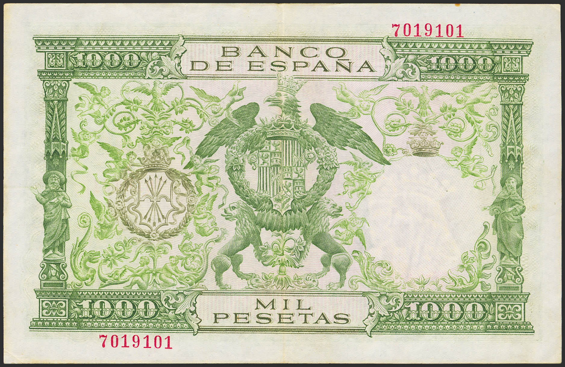 1000 Pesetas. 29 de Noviembre de 1957. Sin serie. (Edifil 2023: 469). Inusual, conserva parte de su apresto original. EBC-.