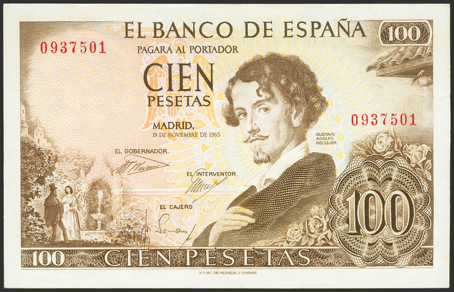 100 Pesetas. 19 de Noviembre de 1965. Sin serie. (Edifil 2023: 470). Apresto original. SC-.